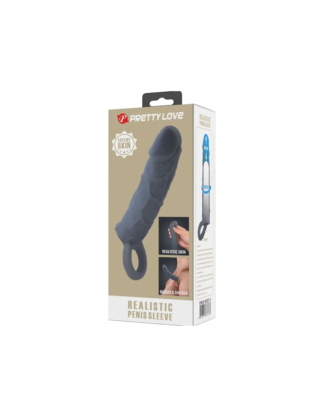 PRETTY LOVE - FUNDA DE PENE DE PIEL REALÍSTICA GRIS OSCURO