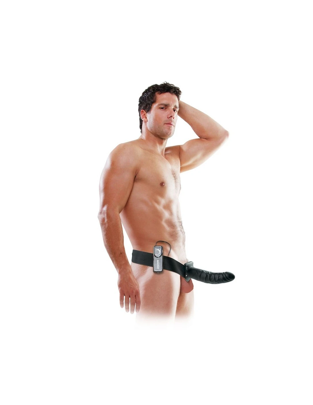 Es un fantástico arnés vibrador hueco para hombre en color negro.