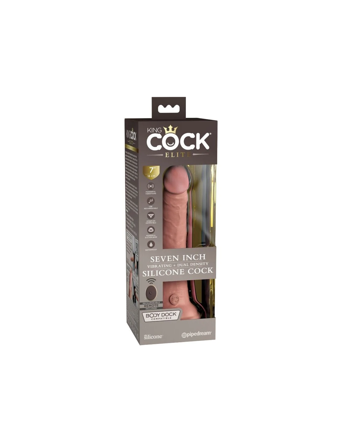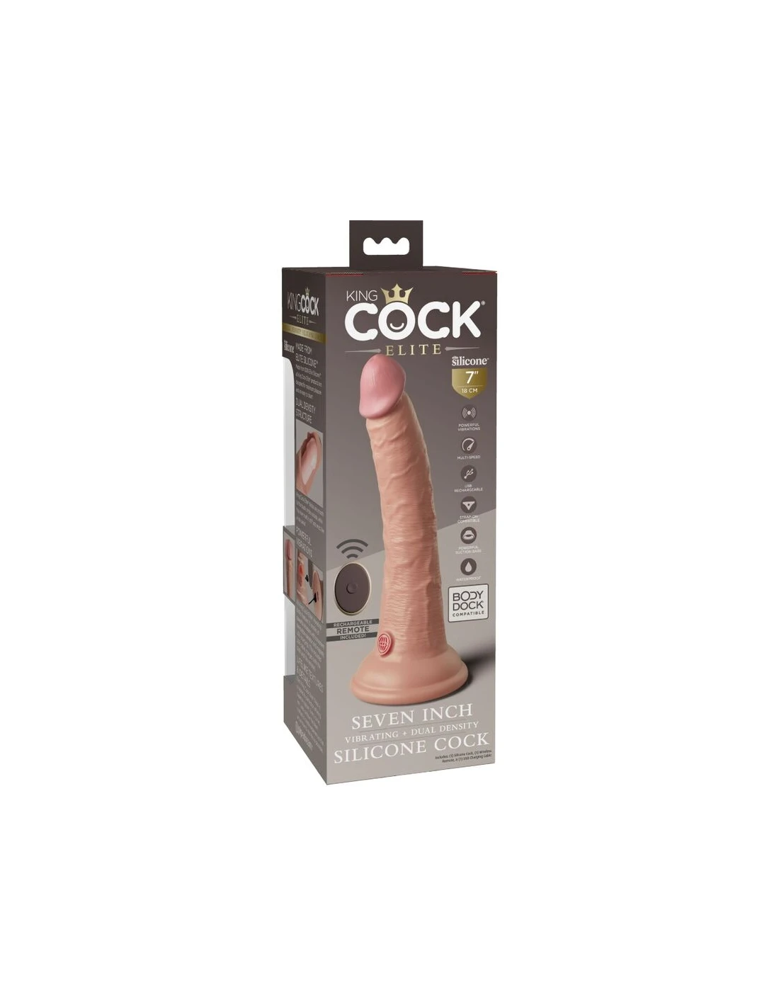 KING COCK - ÉLITE DILDO REALÍSTICO VIBRADOR & SILICONA CONTROL REMOTO 17.8 CM