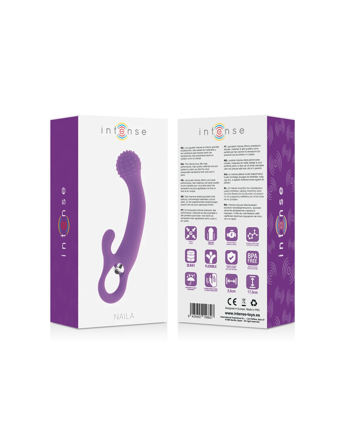 Intensifica tu placer con Intese toys, un concepto clasico que no todos consiguen hacer. Con Naila aumentarás tu instinto sexual, curvado para una estimulación del punto g que ademas añade sensacion en salientes suaves de silicona, punta estimulador clitorial y mango de facil sujeción para un uso placentero. 100% Fabricado en silicona suave y sedosa medica.