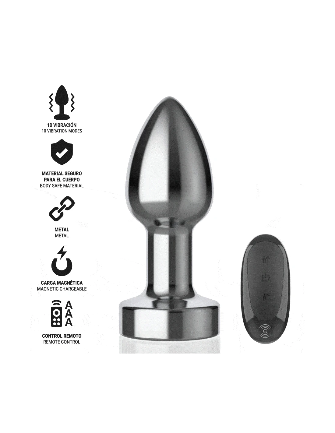 INTENSE - PLUG ANAL 10 VIBRACIONES METAL CON CONTROL REMOTO S