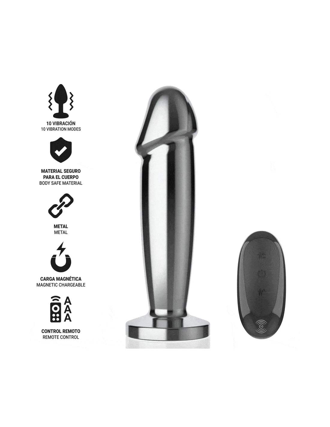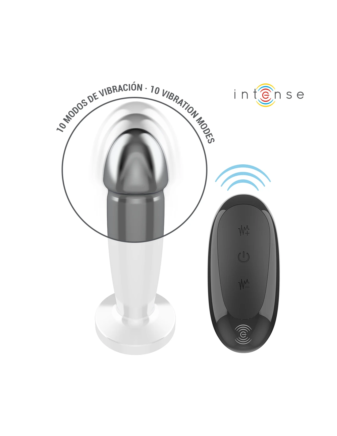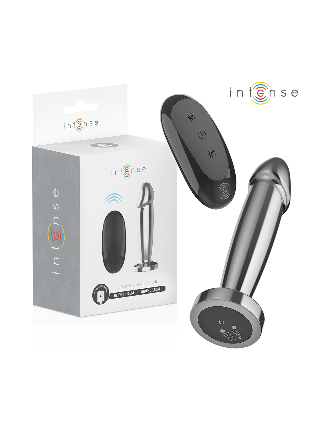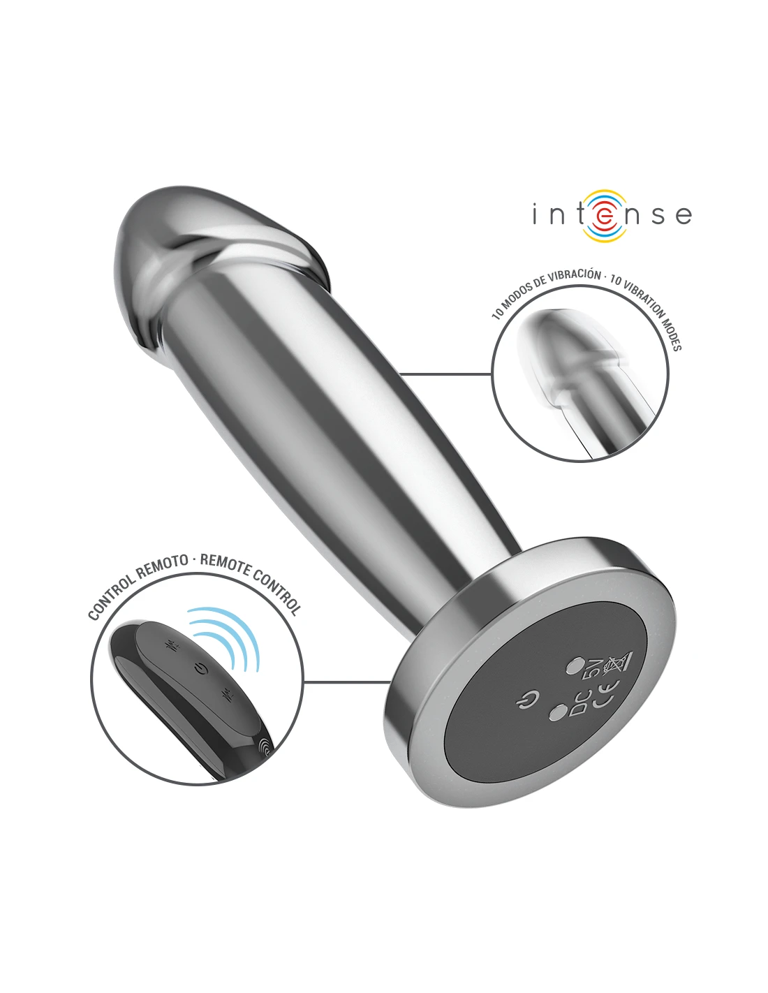 INTENSE - PLUG ANAL 10 VIBRACIONES METAL EN FORMA DE DILDO CON CONTROL REMOTO S