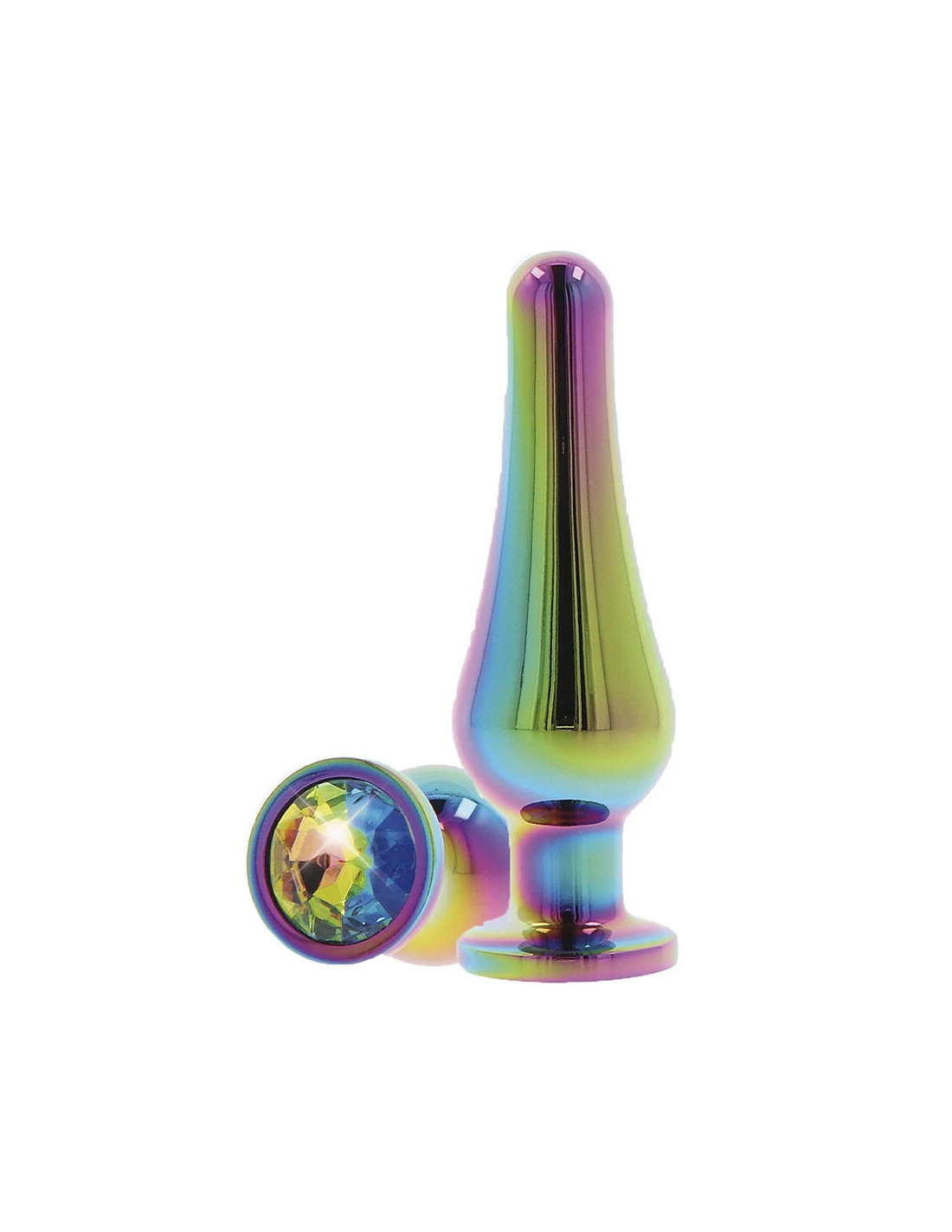 El Twilight Bum Bijou es un plug anal de calidad con una joya arcoíris en la base, ¡que hará que tu trasero brille con color! Este elegante plug presenta una silueta cónica y una base acampanada, realzada con una joya arcoíris. Fabricado en aluminio, el Twilight Bum Bijou es suave al tacto y completamente seguro para el cuerpo. Un imprescindible de la colección Anal Play de TOYJOY. Es el plug unisex perfecto para añadir un toque glamuroso y colorido a tus aventuras anales.