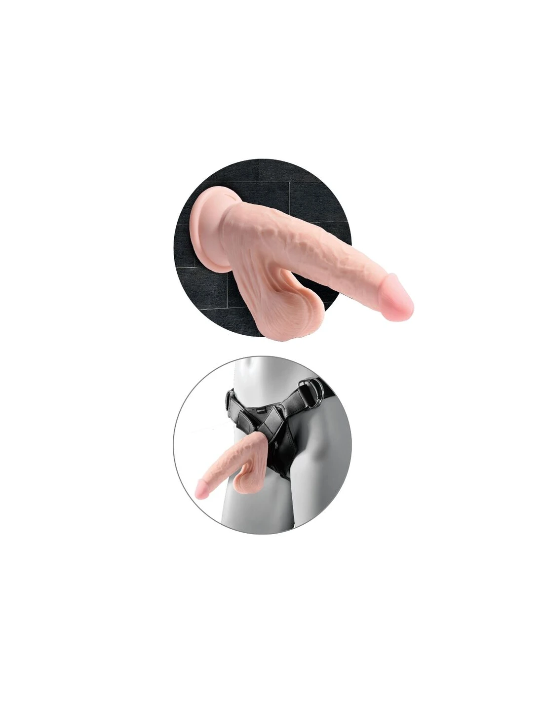 - La base ancha es compatible con el arnés de correa: la ventosa también hace que este arnés de consolador de triple densidad King Cock Plus sea compatible si lo desea.