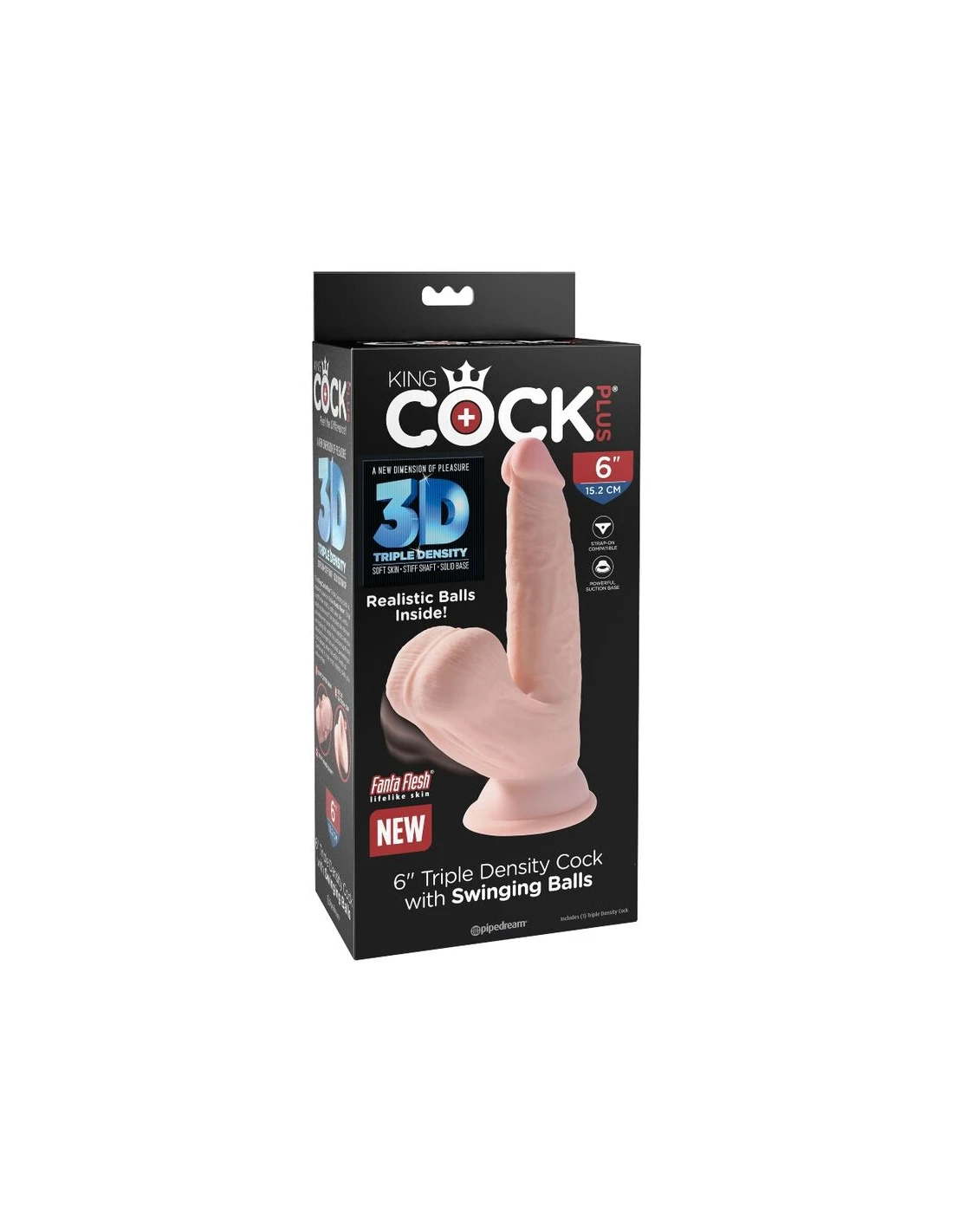 ¡Siente la diferencia! El dildo King Cock Plus Triple Density está hecho de material Fanta Flesh nuevo y mejorado, lo que lo hace rígido por dentro y suave por fuera.