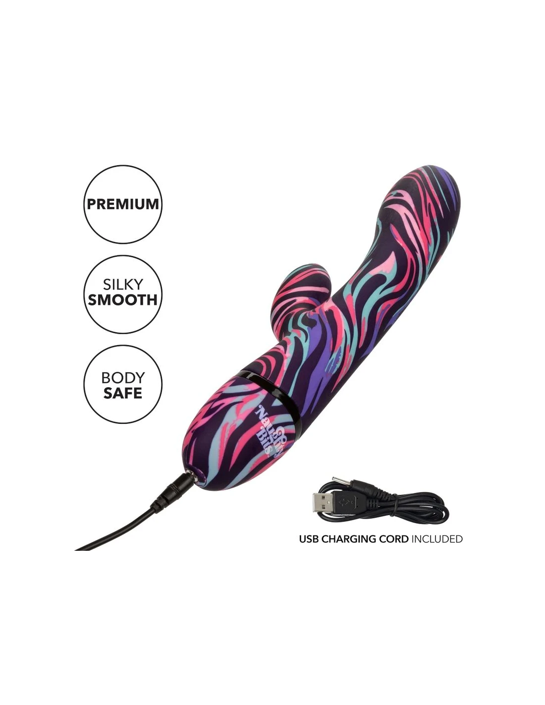 Un vibrador dual en todos los sentidos de la palabra, el ménage à Moi Dual Wand de doble punta, doble estimulador y doble botón tiene el famoso bloqueo de viaje de empuje de 3 segundos CalExotics para garantizar un viaje discreto, pero también contiene 10 funciones alucinantes de vibración, pulsación y escalada, todo envuelto en un robusto eje recargable por USB y un estimulador de puro placer que seguramente le volverá loca, tanto cuando se usa sola o en compañía