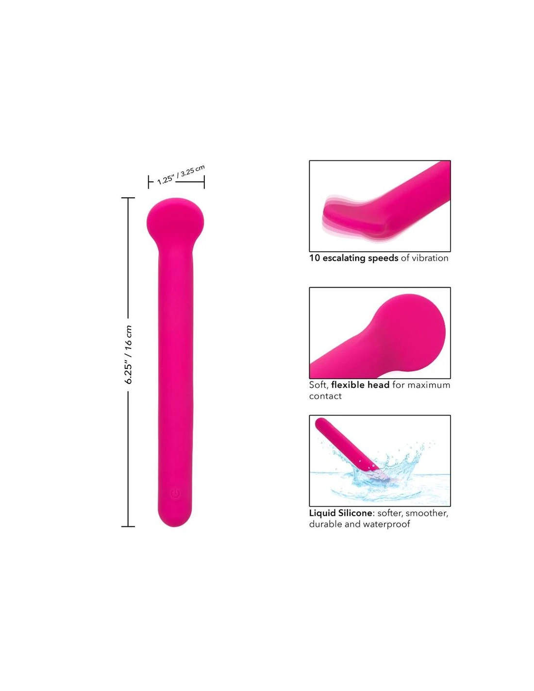 Disfrute de un paraíso de placer con el clítoris de silicona líquida de felicidad. Este ambiente sensacional presenta una punta flexible y plana, un diseño de silicona líquida formadora de cuerpo y 10 funciones potentes de vibración. La punta de contacto suave y máxima y el cuerpo de silicona 100% líquido son perfectos para acariciar puntos dulces internos y externas. Obtenga juguetón con cada aumento de las 10 velocidades incrementales de vibración con el botón de control de fácil toque. Control sin esfuerzo El placer puro con un botón de silicona de fácil toque y mantenga presionada durante 3 segundos para encenderse o desactivarse. La silicona líquida ultra plano es ideal para explorar puntos dulces sensuales y puntos de placer íntimos con facilidad. Use el control suave de un solo botón para disfrutar de hasta 110 minutos de placer vibrante. Cargue su pasión en solo 1,5 horas conectando el cable USB proporcionado al puerto de carga de auto-selección en la base del masajeador .