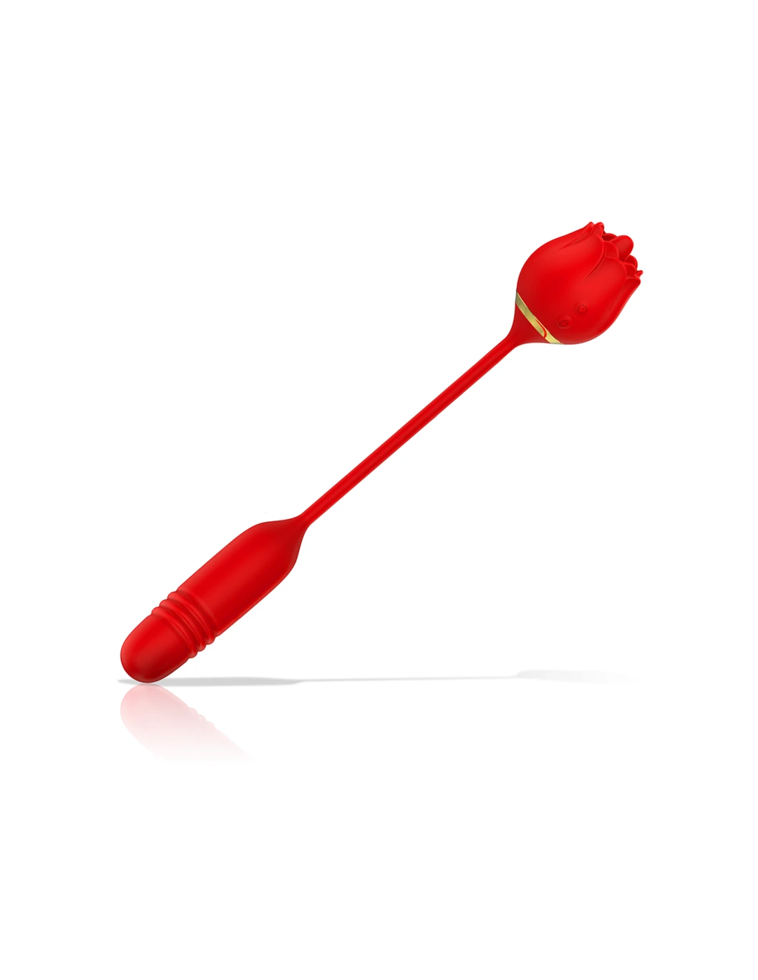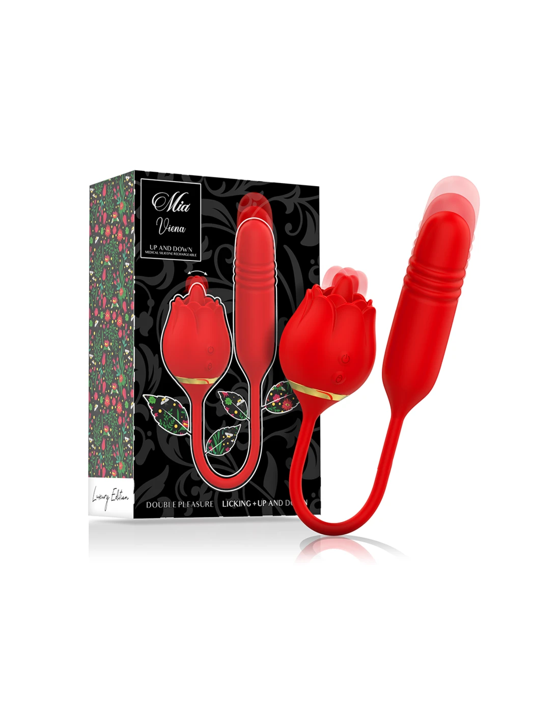 ¡Sube a la cima! The MIA DOOBLE PLEASURE LICKING: el vibrador en forma de rosa con una punta muy traviesa que maneja todos los picos de. Con la punta redondeada del estimulador 100% en silicona, las vibraciones circulantes y un total de 10 combinaciones de vibraciones, mima todas tus zonas erógenas como el clítoris, los labios o los pezones, ¡puedes hacerlo sobre la marcha! De esta manera, el vibrador de punta también se puede transportar discretamente cuando viaja y siempre lo deleita con su absoluta versatilidad.