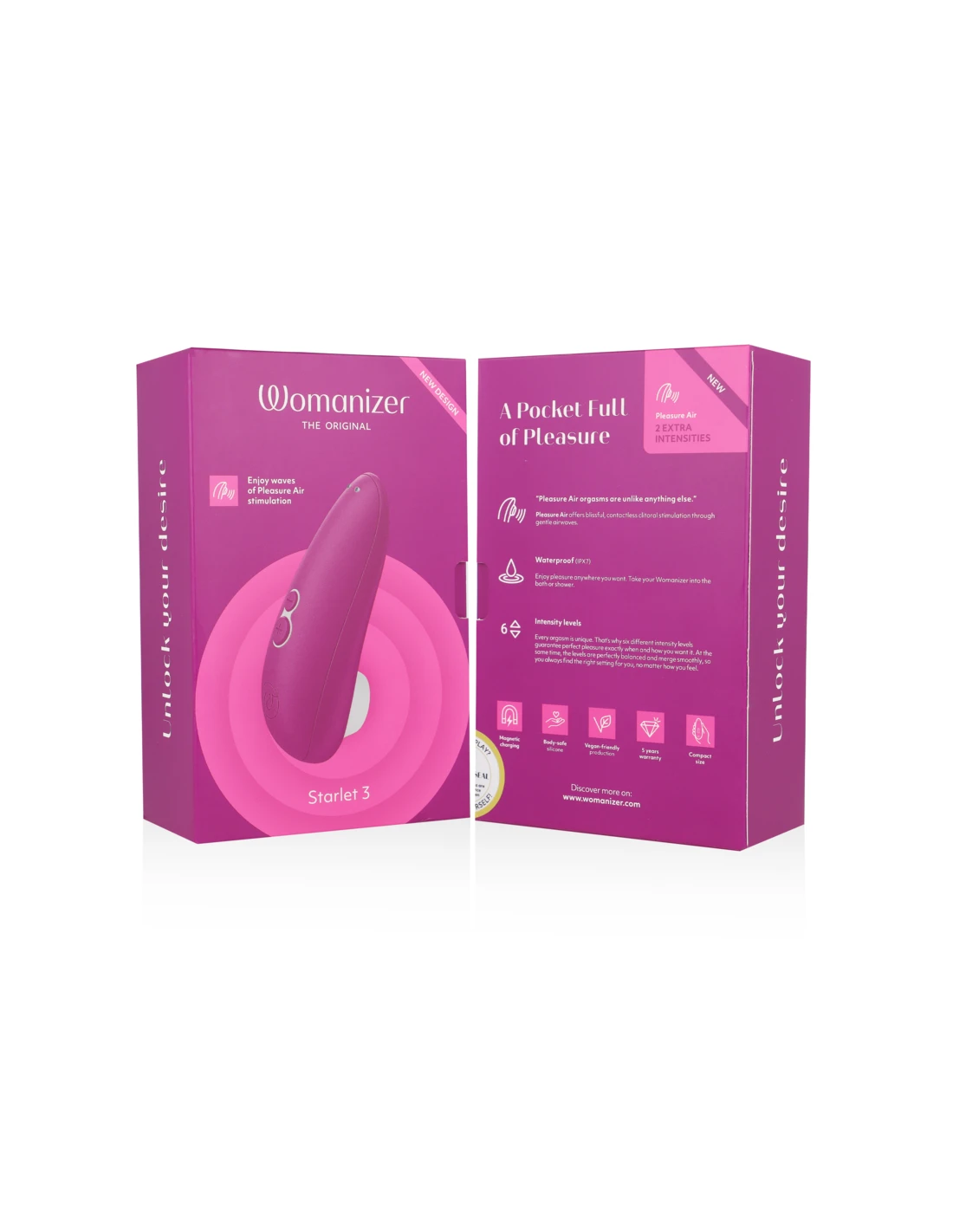 Hecho para ti y tu cuerpo, el Starlet 3 utiliza una innovación única llamada Pleasure Air Technology. ¿Por qué es tan especial? Su clítoris es estimulado sin contacto directo. Las suaves vibraciones del aire succionan y masajean juntas para proporcionar una sensación orgásmica sin precedentes.