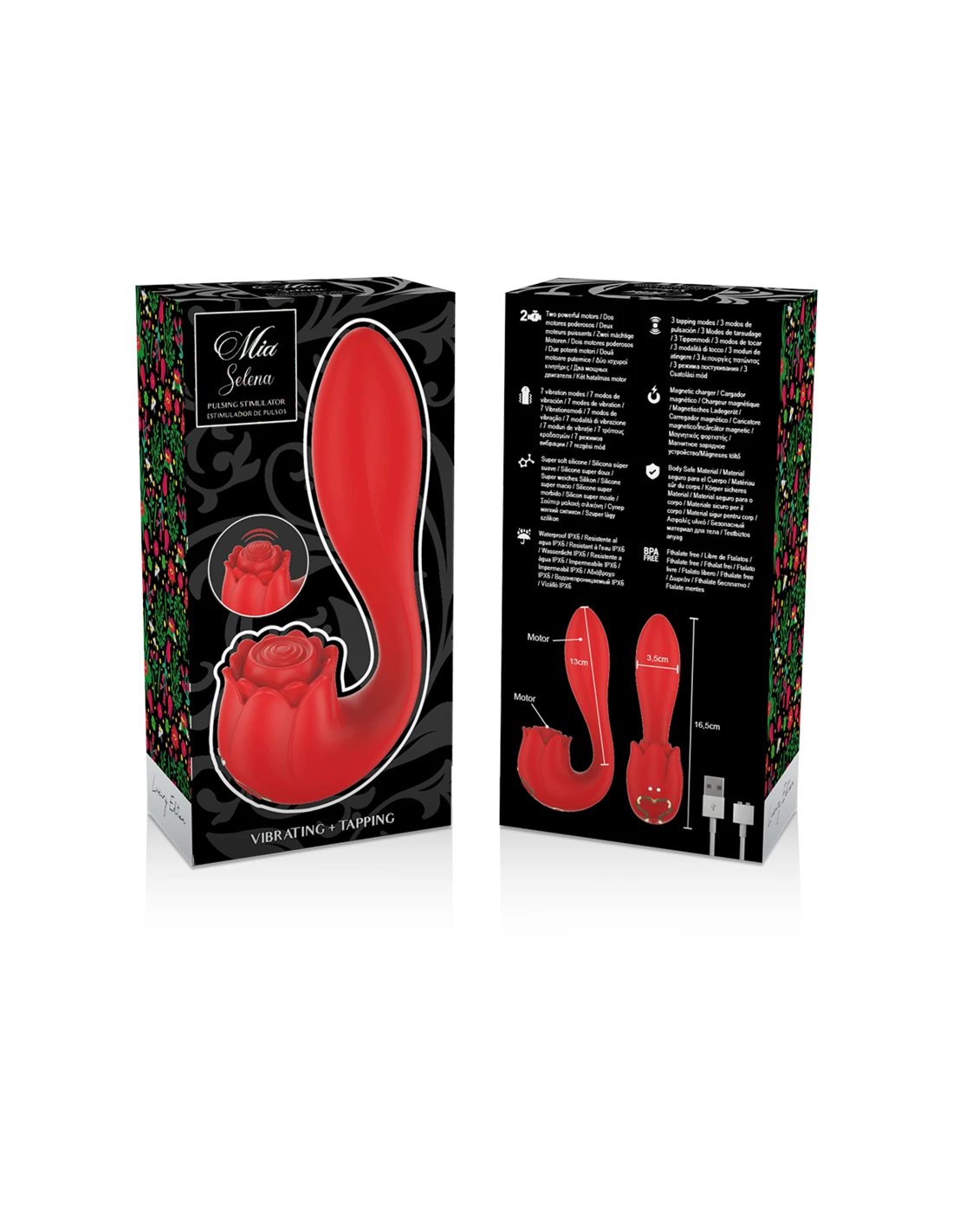 Su forma elegante y sugerente, modelada en una exquisita rosa de color rojo, convierte este estimulador en una obra de arte sensual. La estética refinada se combina con la funcionalidad excepcional, creando un objeto de deseo que no solo satisfará tus necesidades físicas, sino que también estimulará tus sentidos visuales.