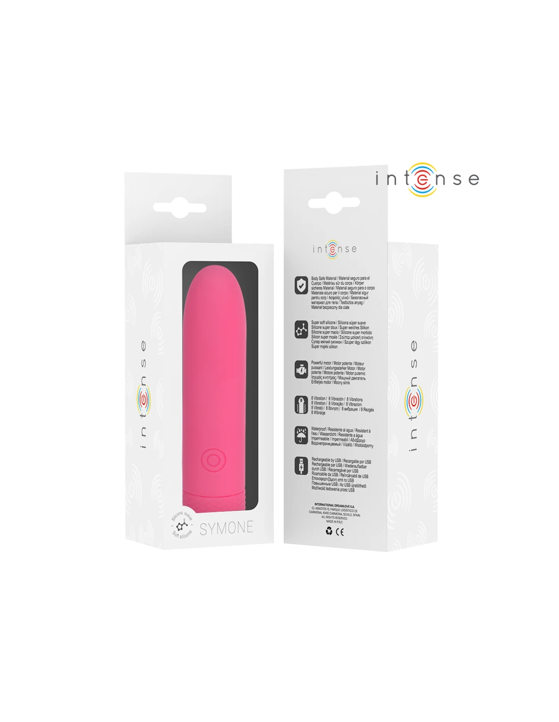 INTENSE - SYMONE BALA VIBRADORA RECARGABLE POR USB 8 VIBRACIONES ROSA 10 X 2.2 CM