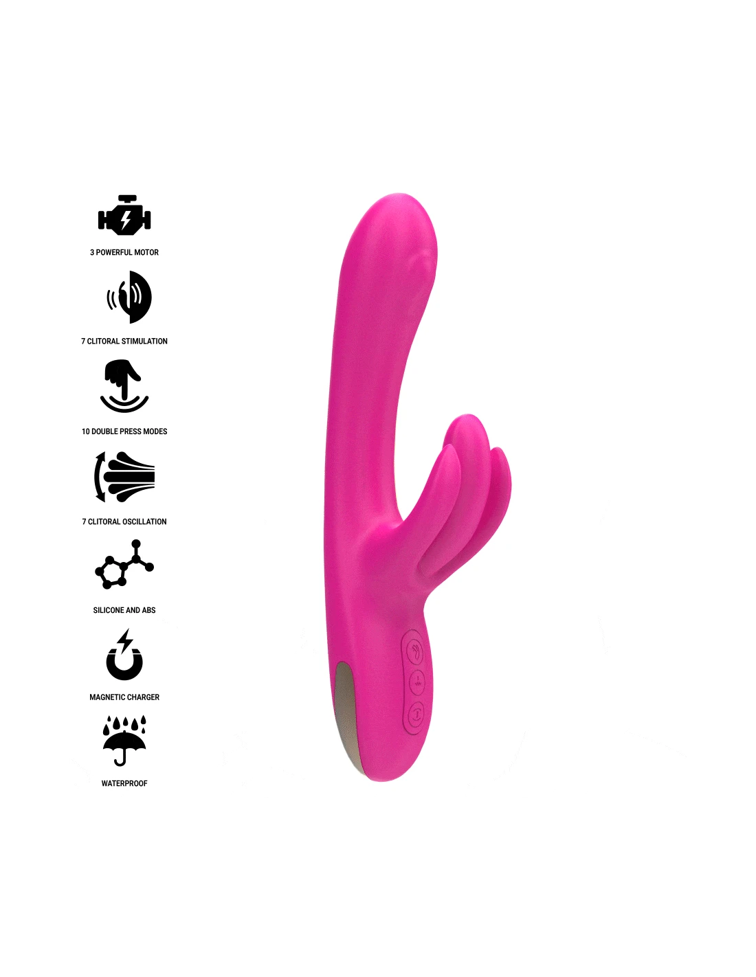 - Diseño ergonómico tipo rabbit para estimulación dual (interna y clitorial)