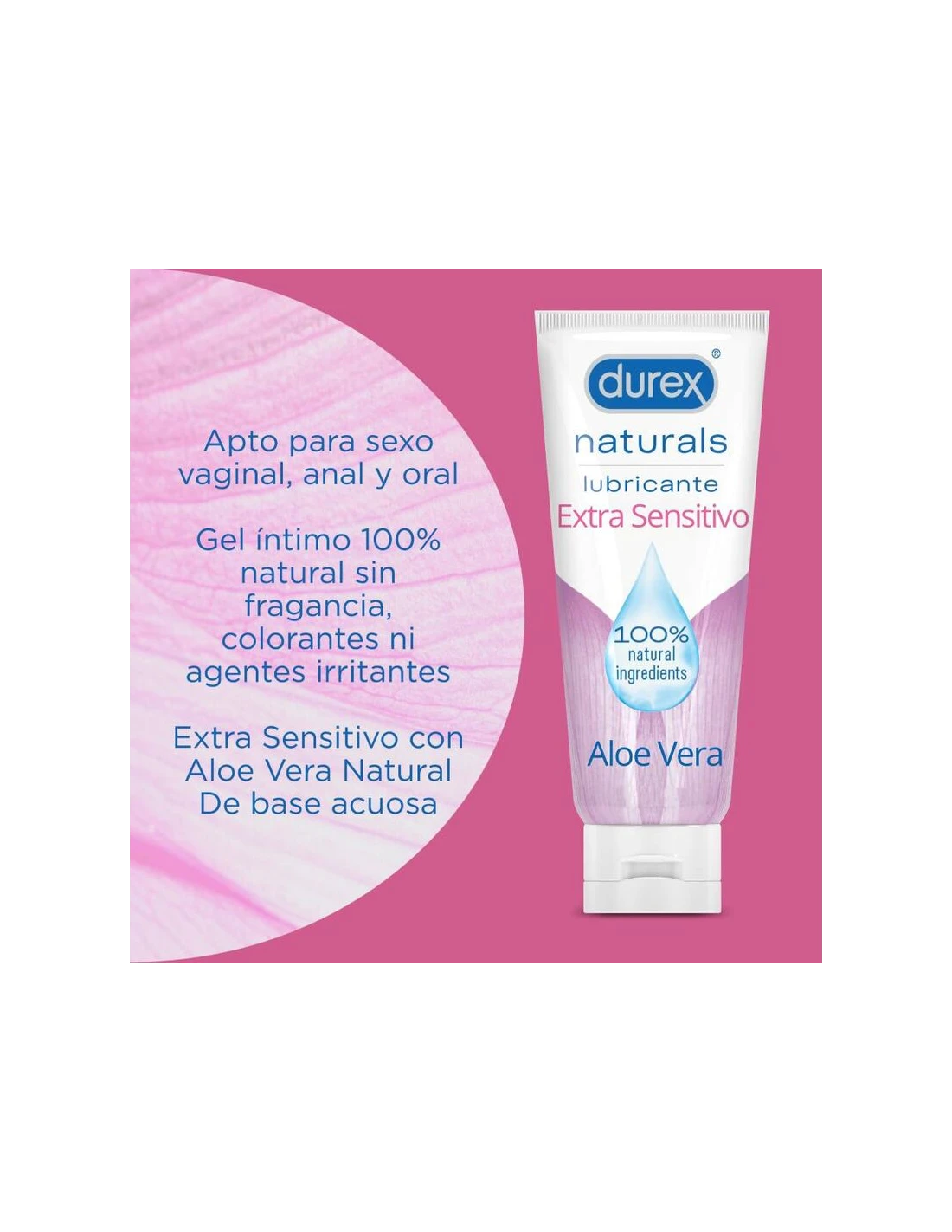 Durex Naturals Extra Sensitivo, es un lubricante extra sensitivo hecho con ingredientes 100% naturales y Aloe Vera natural que aporta suavidad y ayuda a sentir el sexo suave de forma natural. Este lubricante íntimo de Durex aporta los siguientes beneficios: