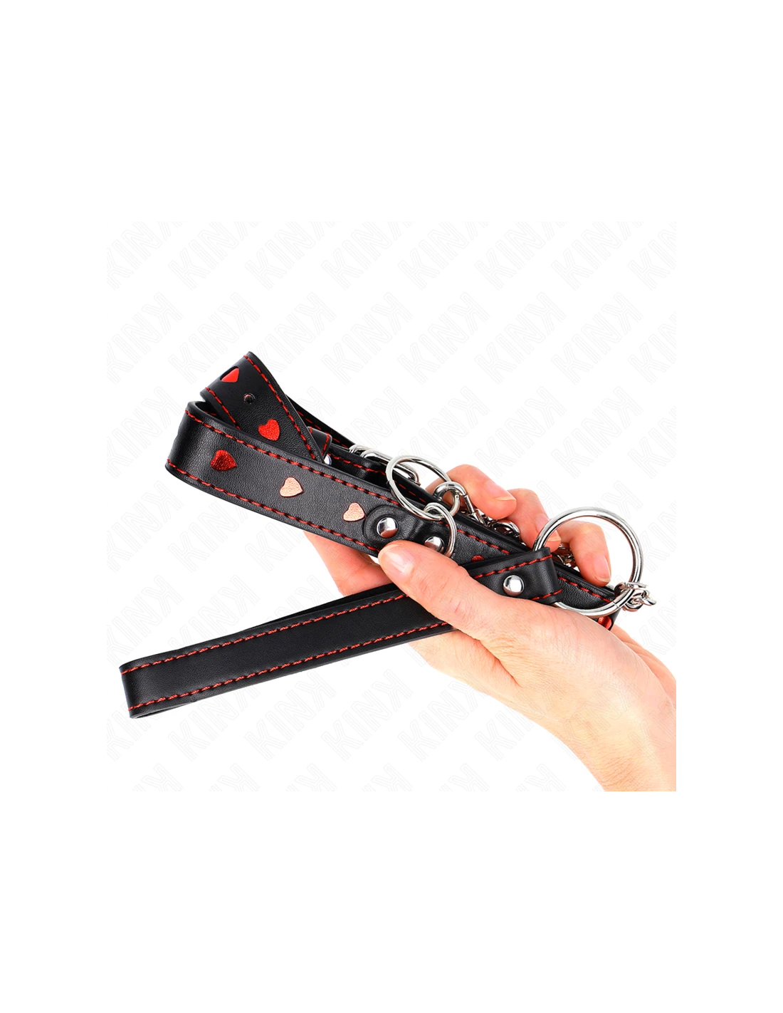 - Materiales: Los collares con correa de KINK están fabricados con cuero, cuero vegano, silicona y metal de alta calidad. Las correas son robustas y cómodas, con asas ergonómicas que permiten un control seguro y efectivo. Los collares y correas están diseñados para ser resistentes, soportando incluso las sesiones más intensas.