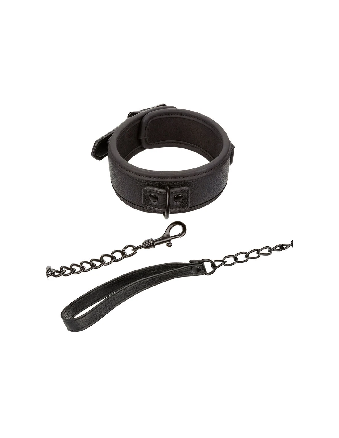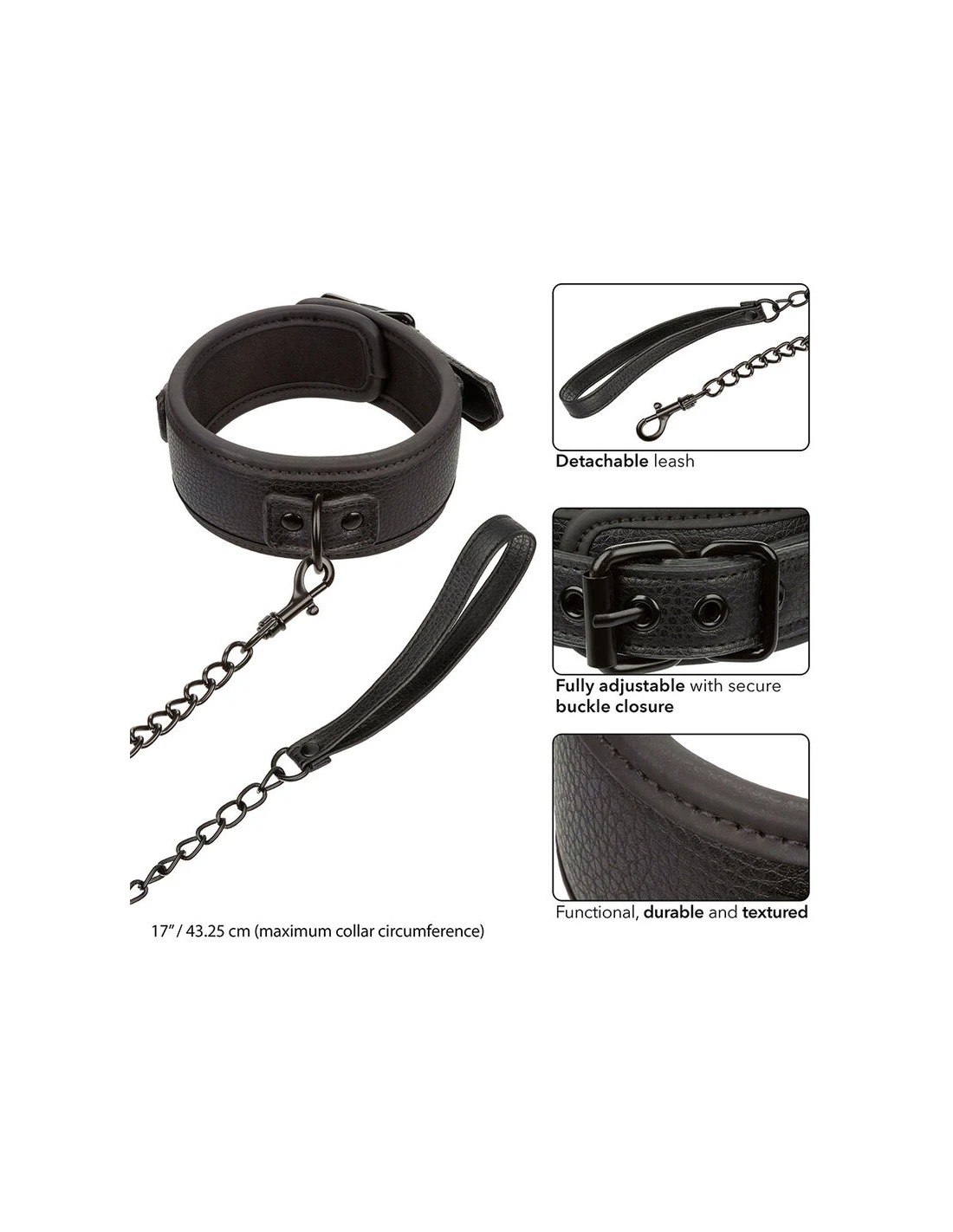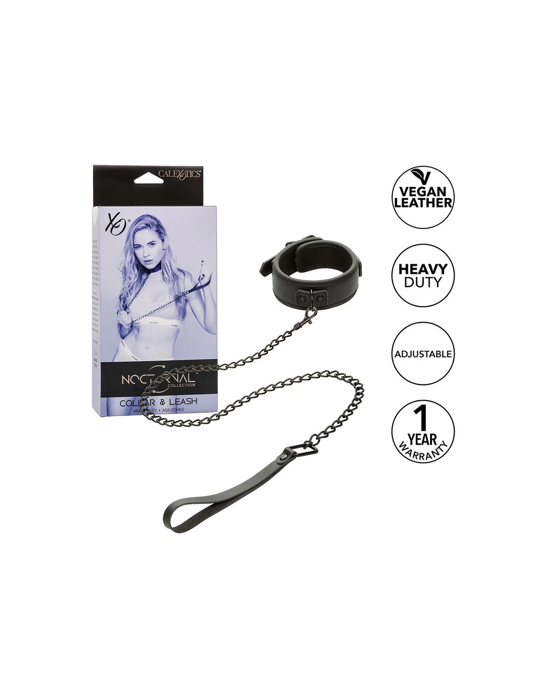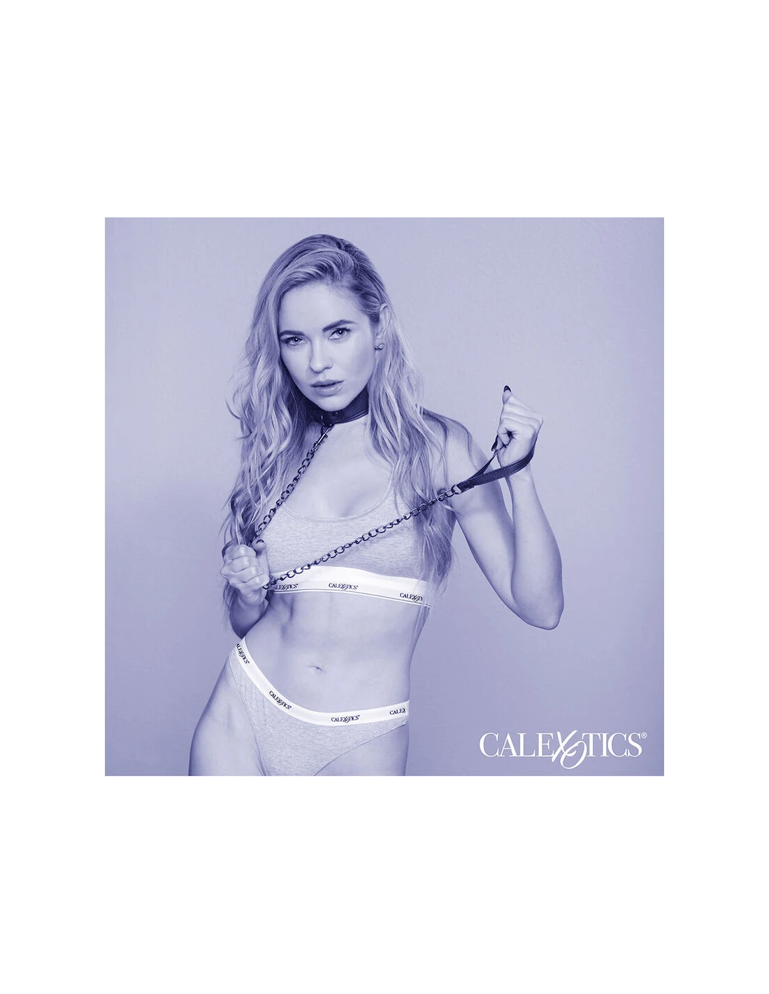CALEXOTICS - NOCTURNAL COLLAR Y CORREA CUERO AJUSTABLE NEGRO