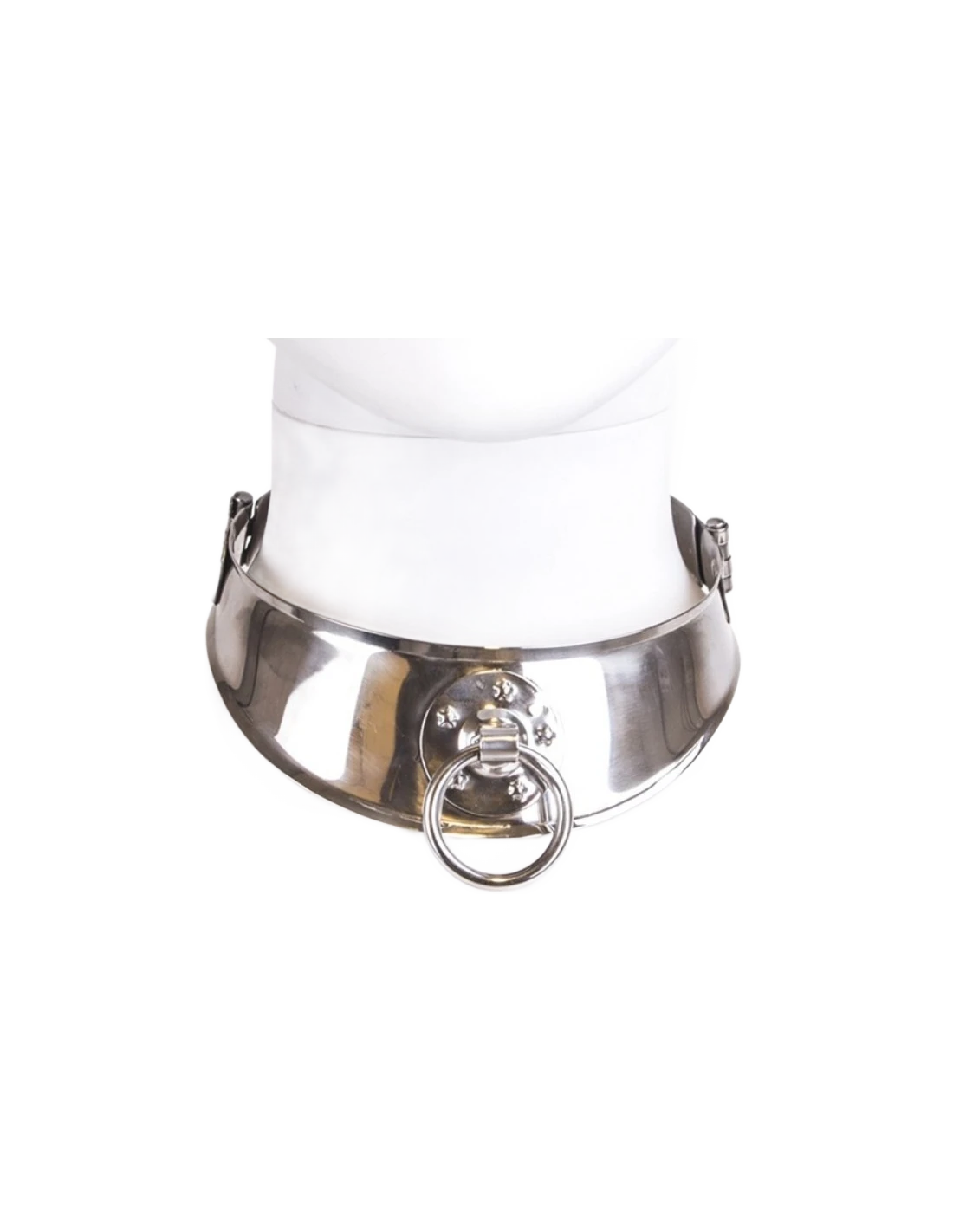 Este collar de sumisión de acero inoxidable puede ser usado como símbolo de sumisión o como un magnífico accesorio para llevar en disfracex u otros juegos fetiches. Es sexy y versátil. Este collar cromado está diseñado especialmente para hombres con bordes curvados.