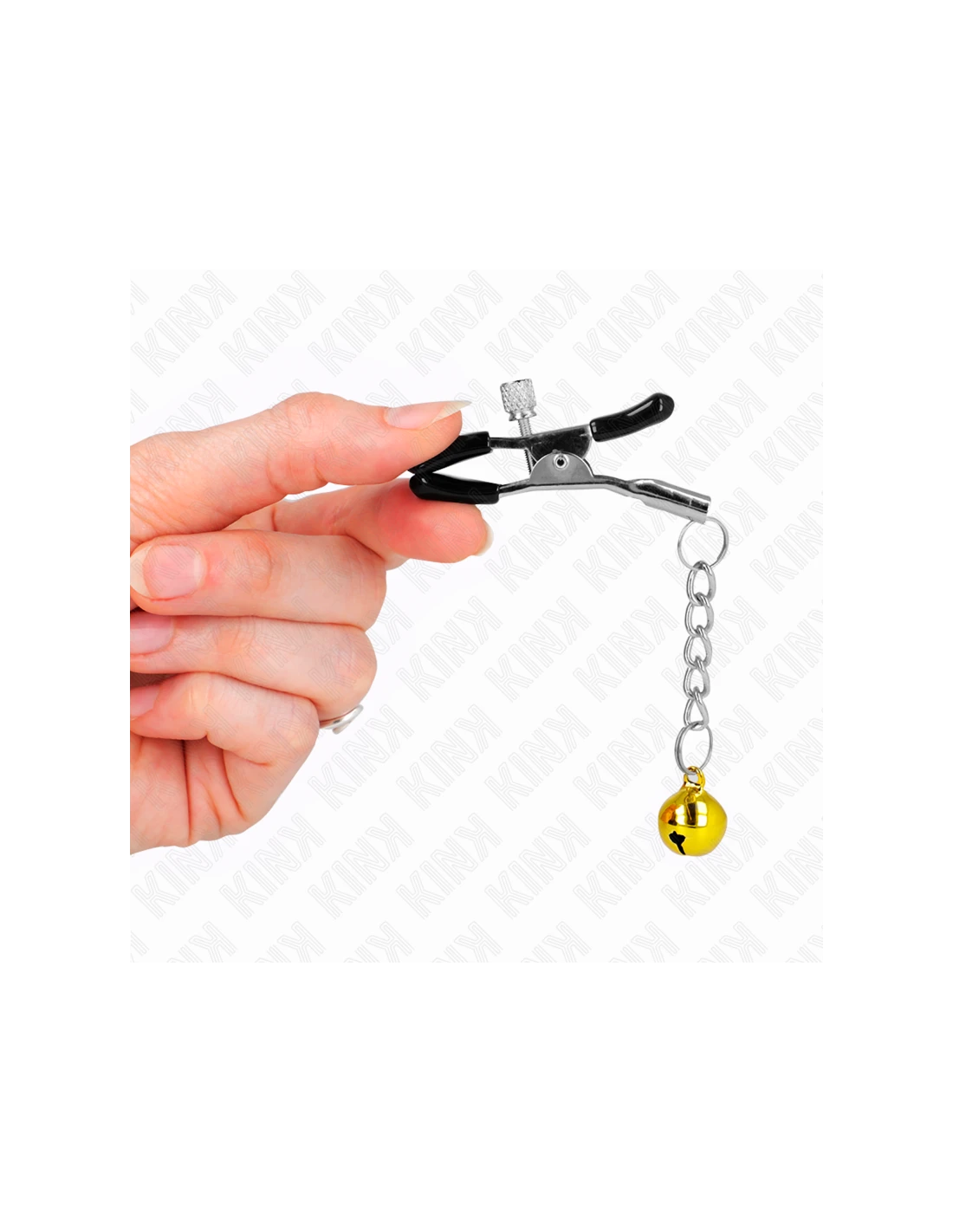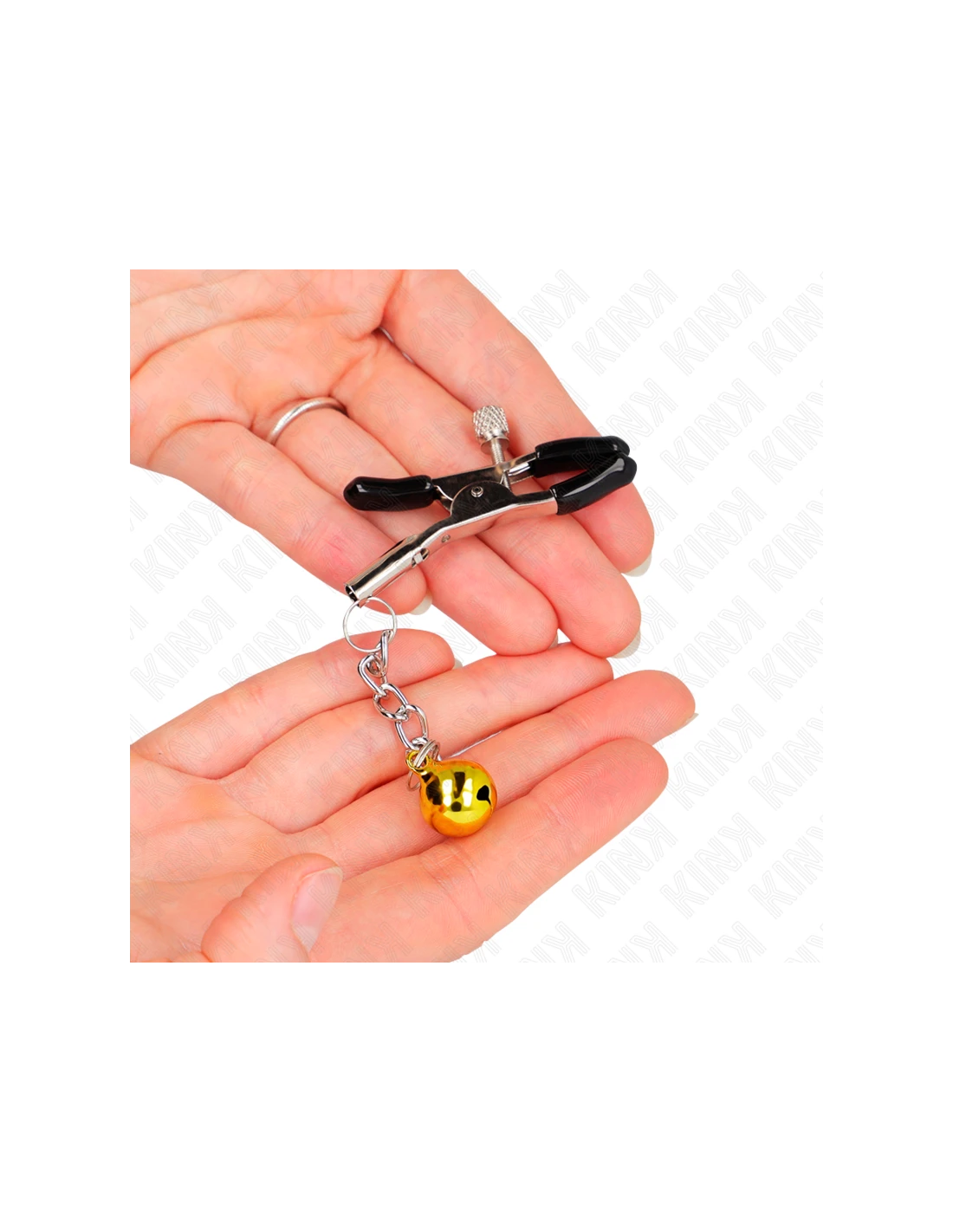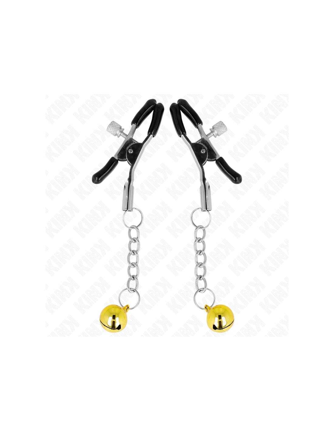 KINK - PINZAS PARA PEZONES CON COLGANTE DE CASCABEL DORADO 6 CM