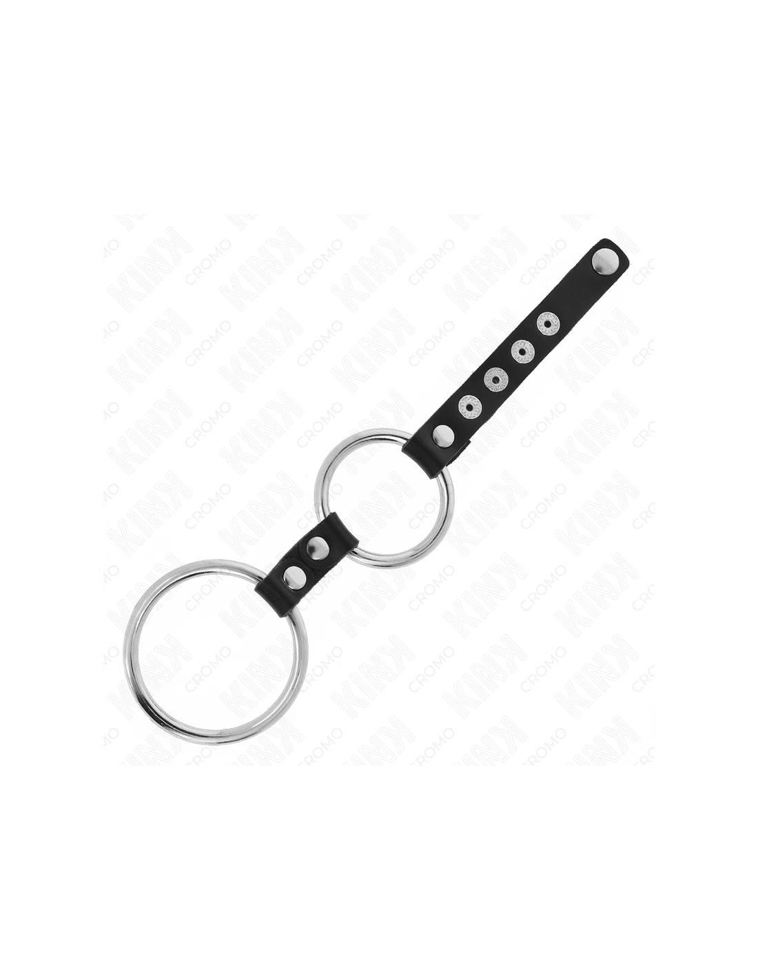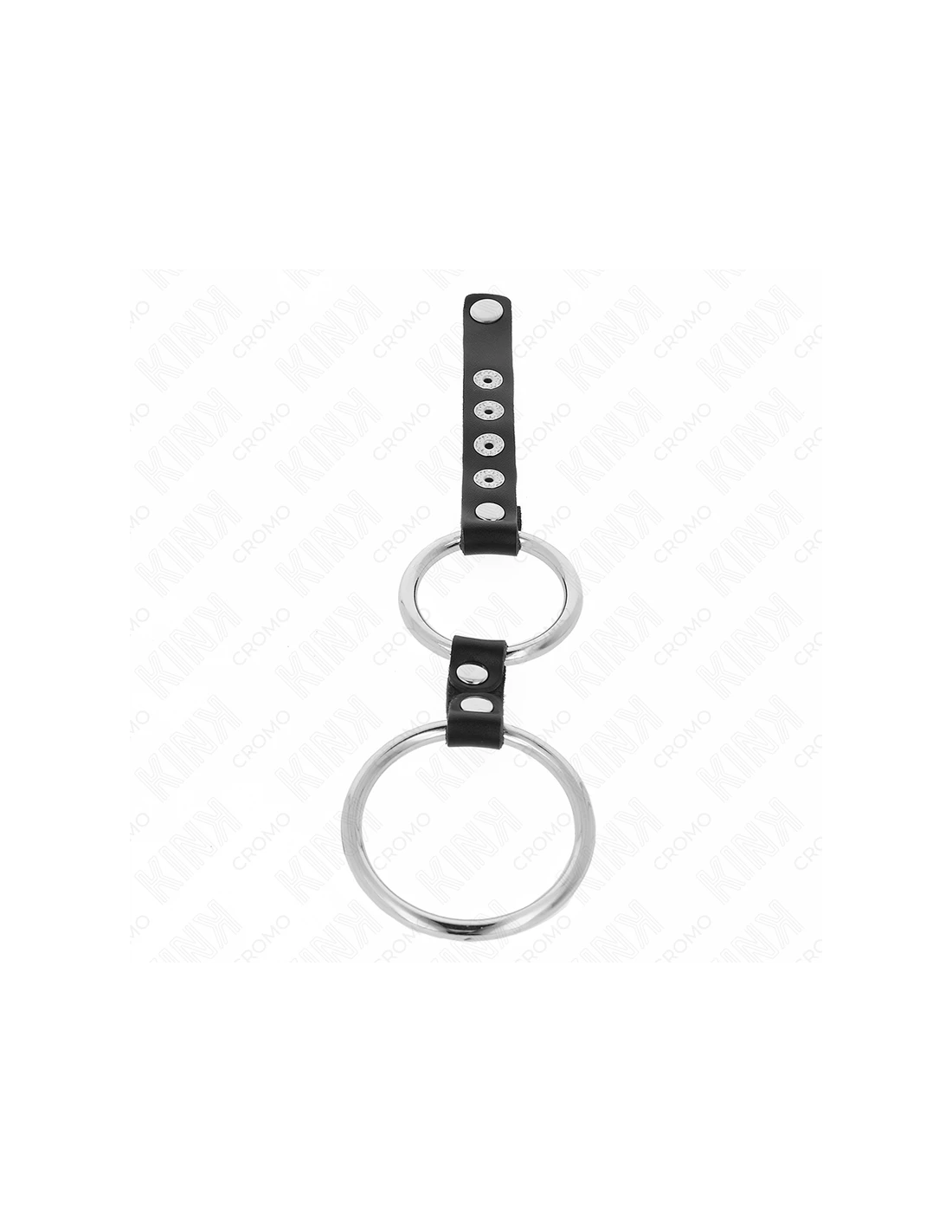 KINK - ANILLO PENE METAL DOBLE 3.8 CM A 5 CM CONECTADOS CON CUERO