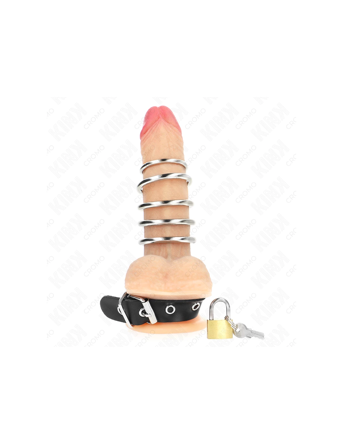 KINK - ANILLO PENE CUERO CORREA CON CERRADURA 21 X 2 CM Y 5 ANILLOS METAL DE 3 CM A 4 CM