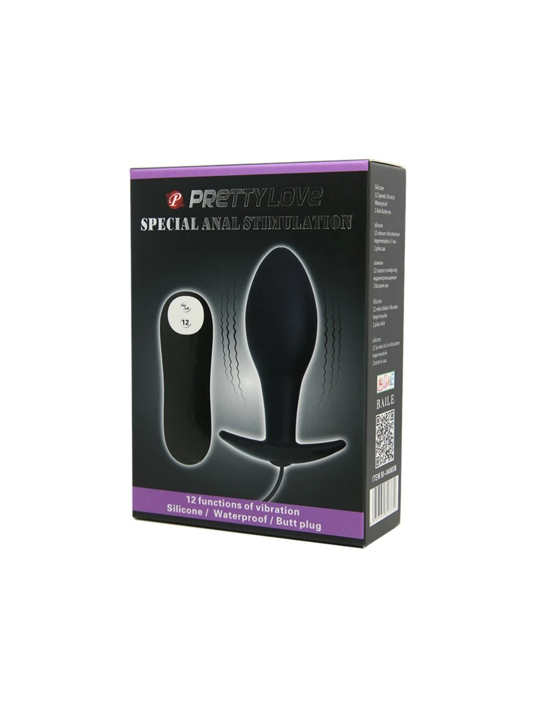 PRETTY LOVE - PLUG ANAL SILICONA FORMA ANCLA 12 MODOS VIBRACIÓN NEGRO