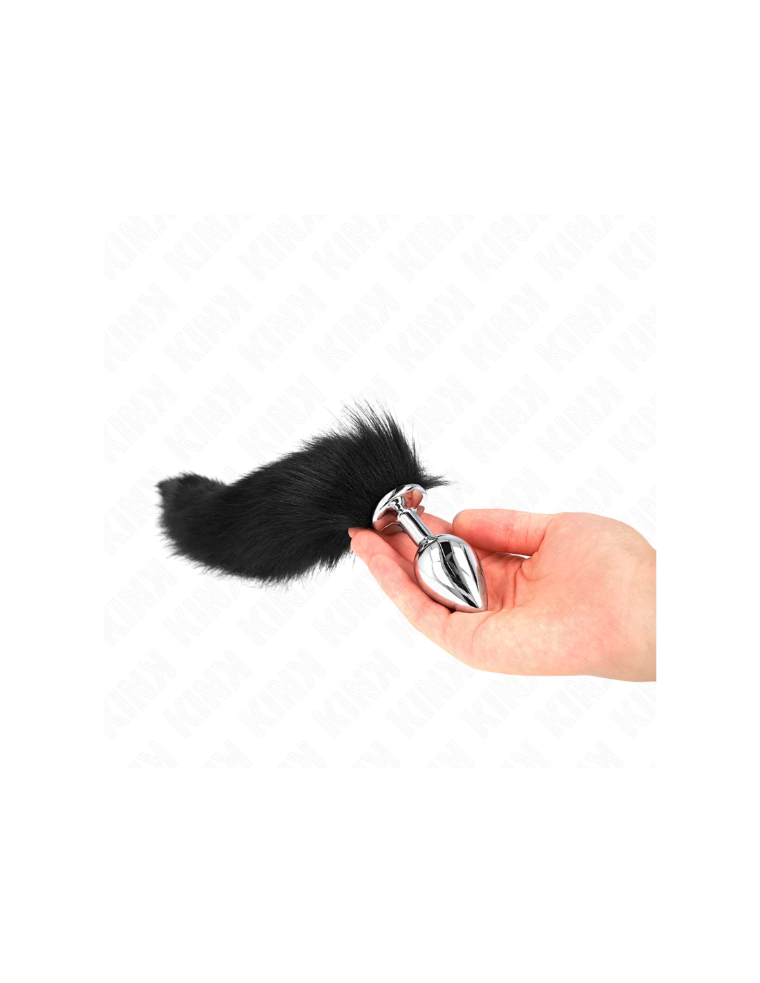 KINK - PLUG ANAL TALLA M 8 X 3.5 CM CON COLA SINTÉTICA 40 CM NEGRO