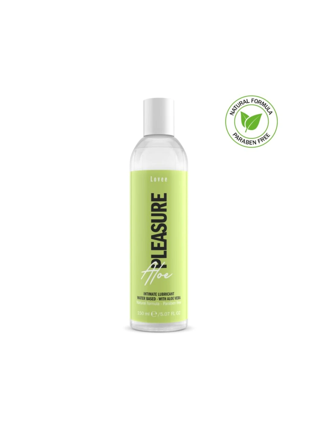 Lovee Aloe Pleasure es un lubricante íntimo natural enriquecido con aloe vera, a base de agua, neutro y agradable para la piel. Sin parabenos ni colorantes. Ultradeslizante e inodoro, no es graso, no mancha y se elimina con un simple aclarado. Su fórmula garantiza la máxima compatibilidad con todos los juguetes sexuales.