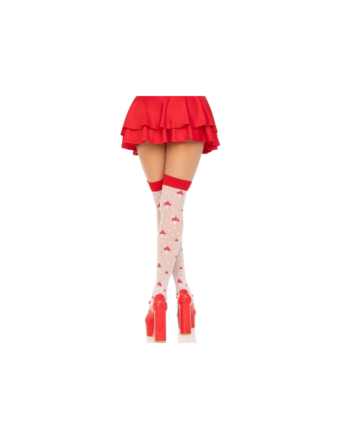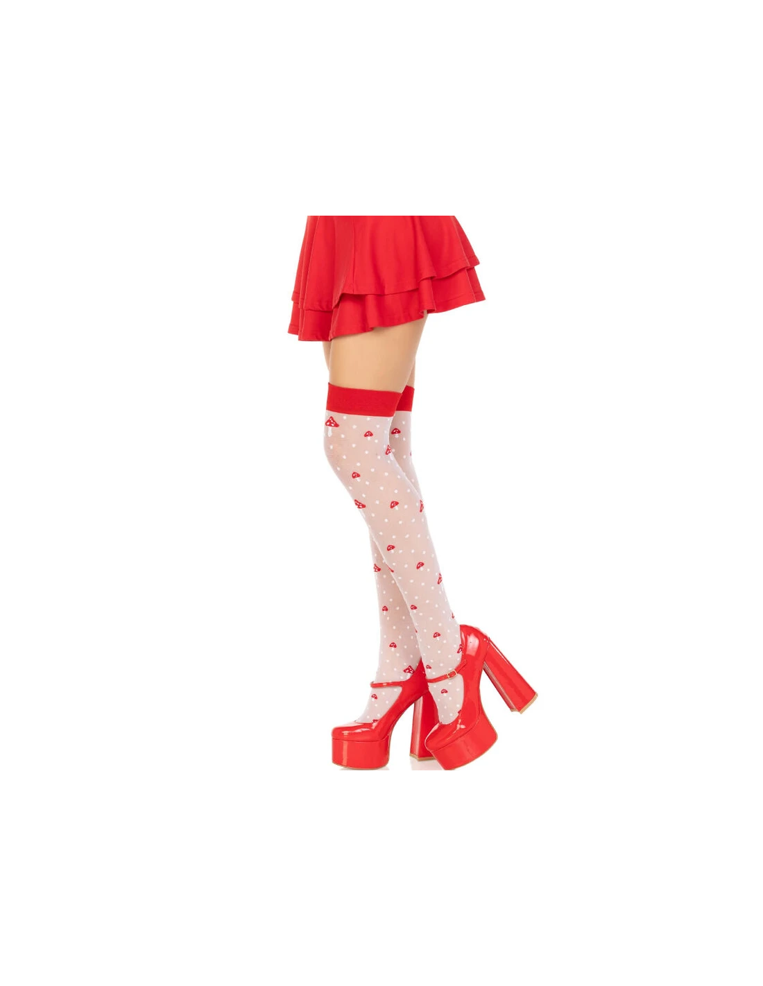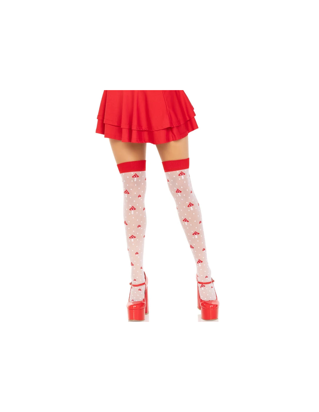 LEG AVENUE - CALCETINES ALTOS CHAMPIÑONES ROJO/BLANCO