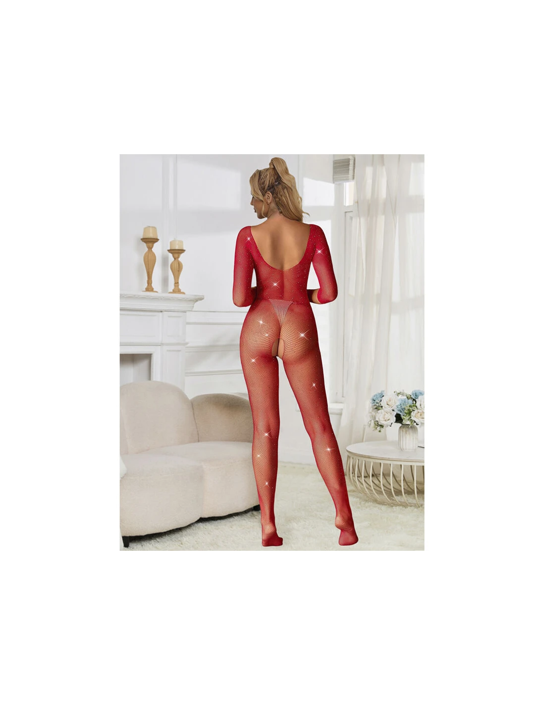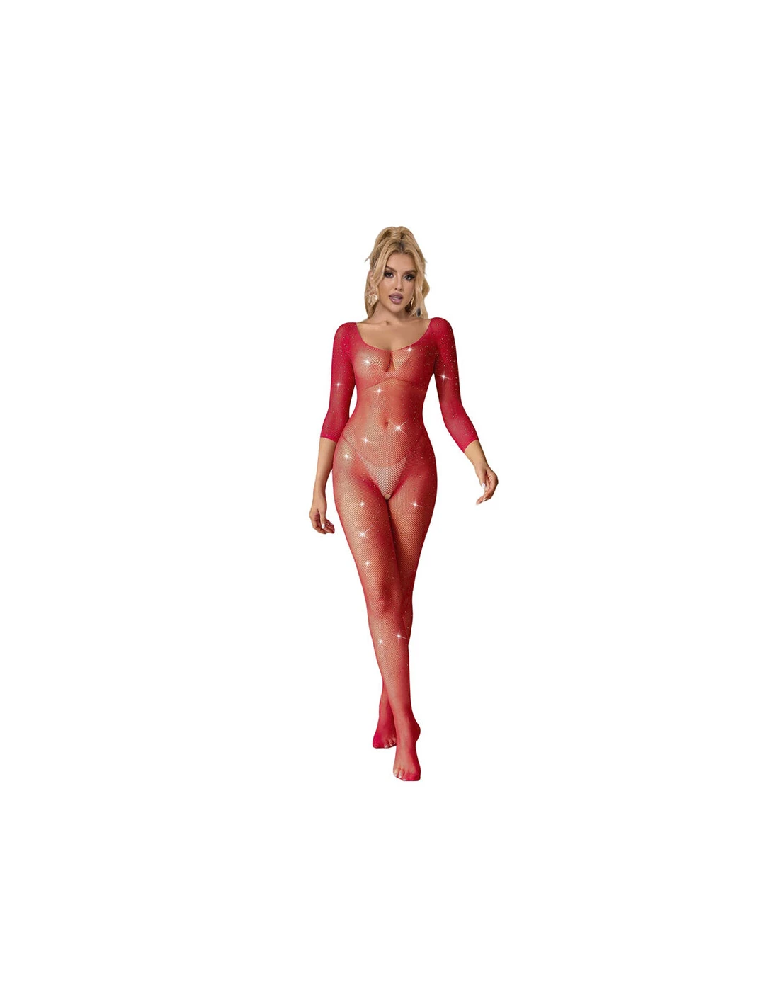 SUBBLIME - 952419 BODYSTOCKING DE REJILLA CON DIAMANTES MANGA LARGA ROJO XS/M