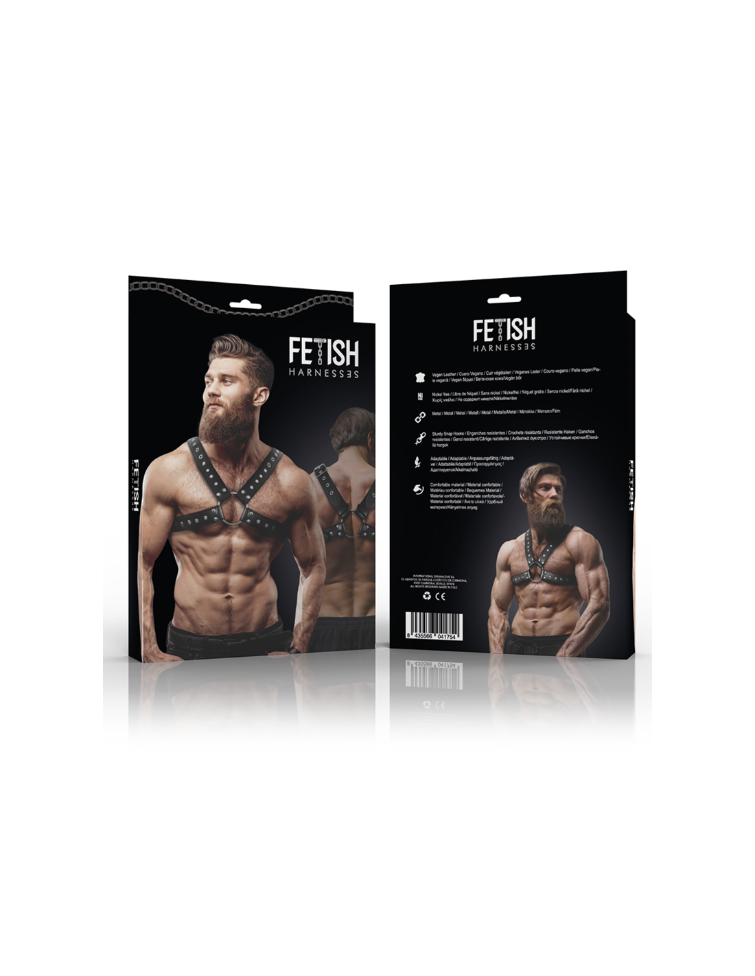 FETISH SUBMISSIVE ATTITUDE - ARNÉS ECOPIEL PECHO CRUZADO CON TACHUELAS HOMBRE