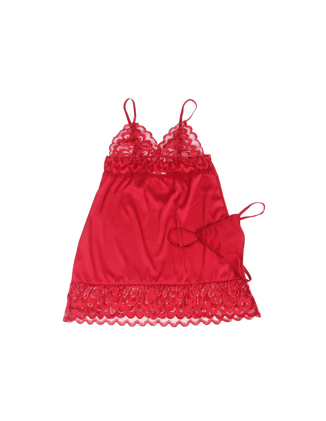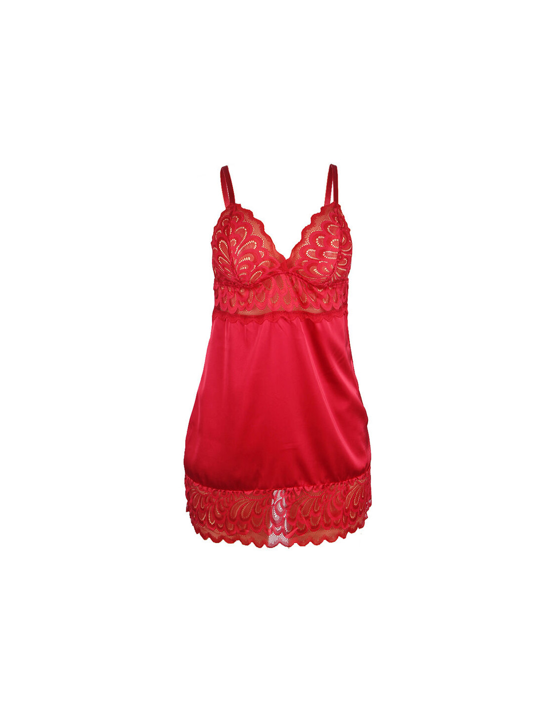 SUBBLIME BABYDOLL SATINADO CON ENCAJE ROJO S M