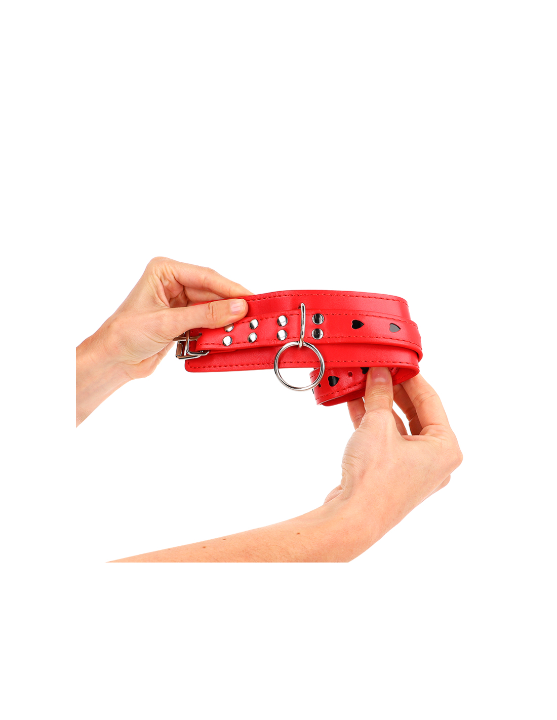 KINK - MUÑEQUERAS ROJO CON INCRUSTACIÓN DE CORAZÓN NEGRO AJUSTABLE 21-28 CM X 5.5 CM