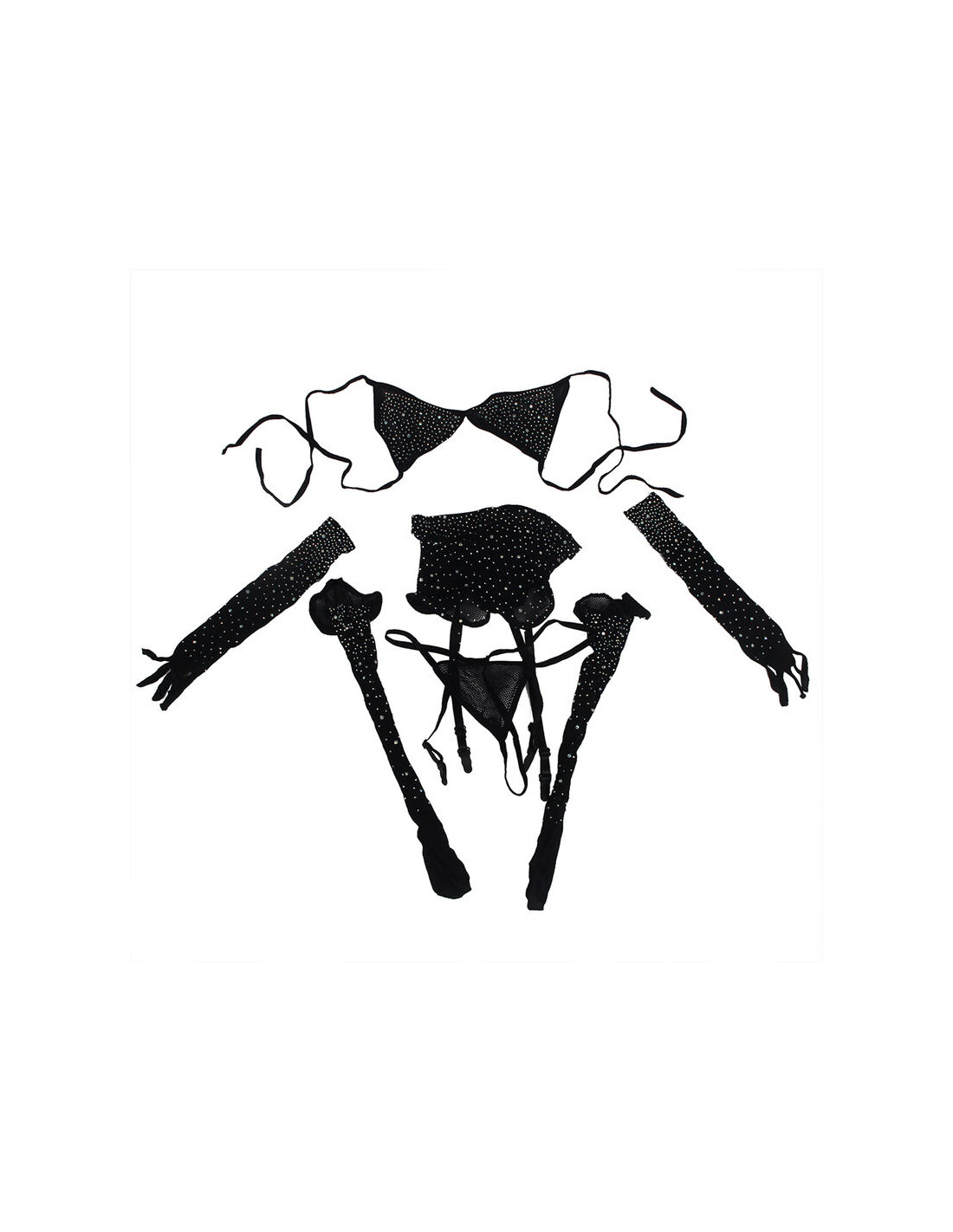 SUBBLIME - 952174 BODYSTOCKING DE REJILLA CON GUANTES Y DIAMANTES NEGRO TALLA ÚNICA