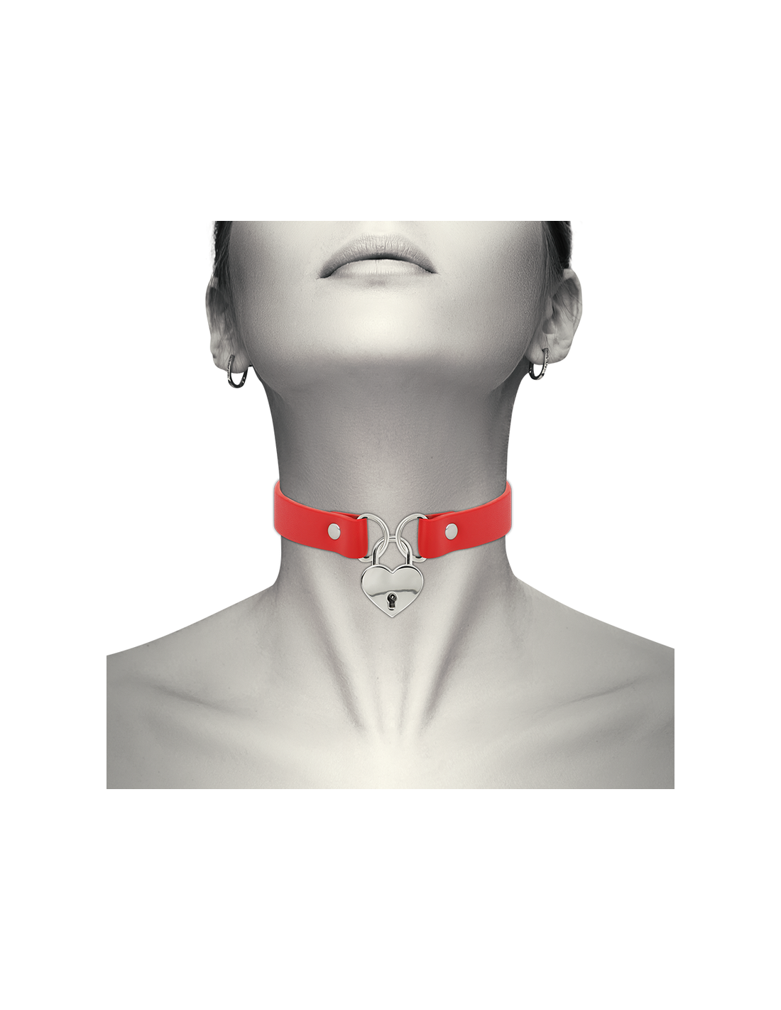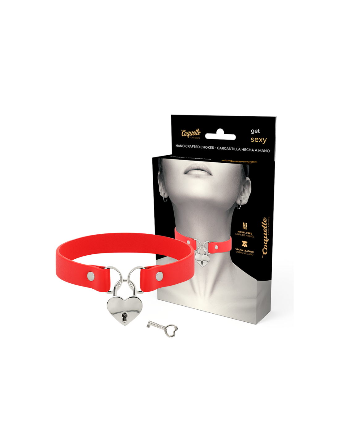 COQUETTE CHIC DESIRE - COLLAR CUERO VEGANO ROJO ACCESORIO CORAZÓN CON LLAVE