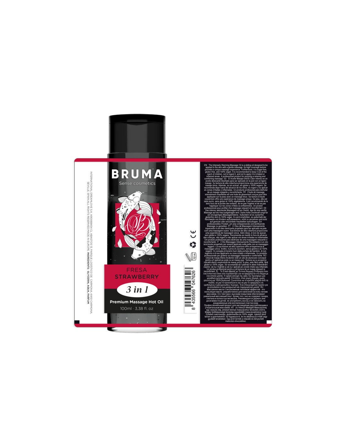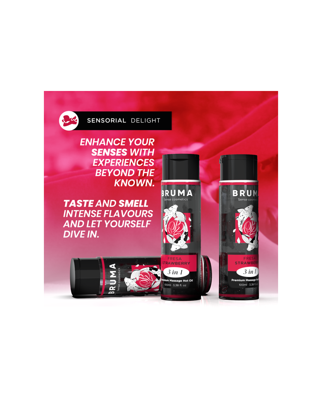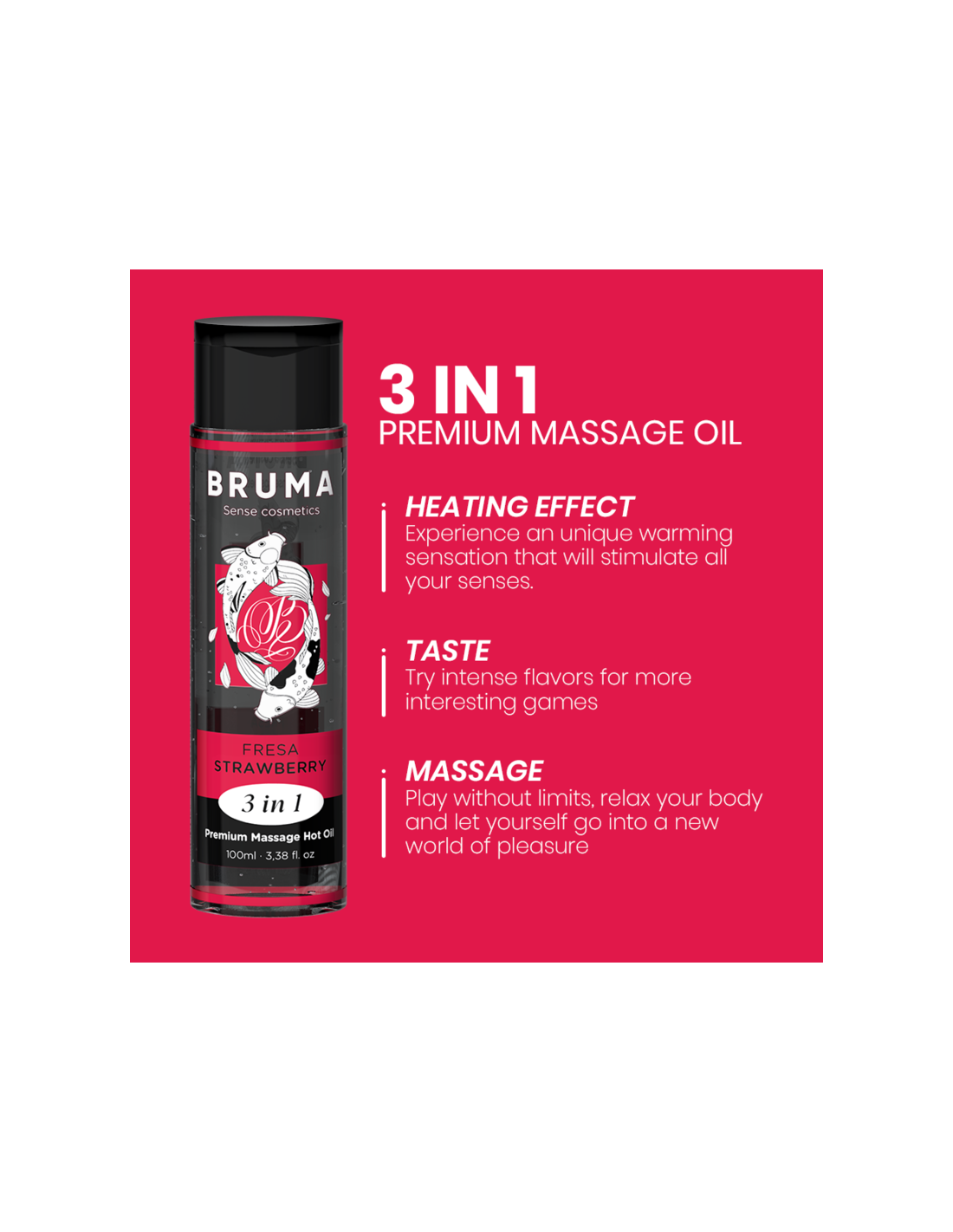 BRUMA - ACEITE DE MASAJE PREMIUM EFECTO CALOR SABOR FRESA 3 EN 1 - 100 ML