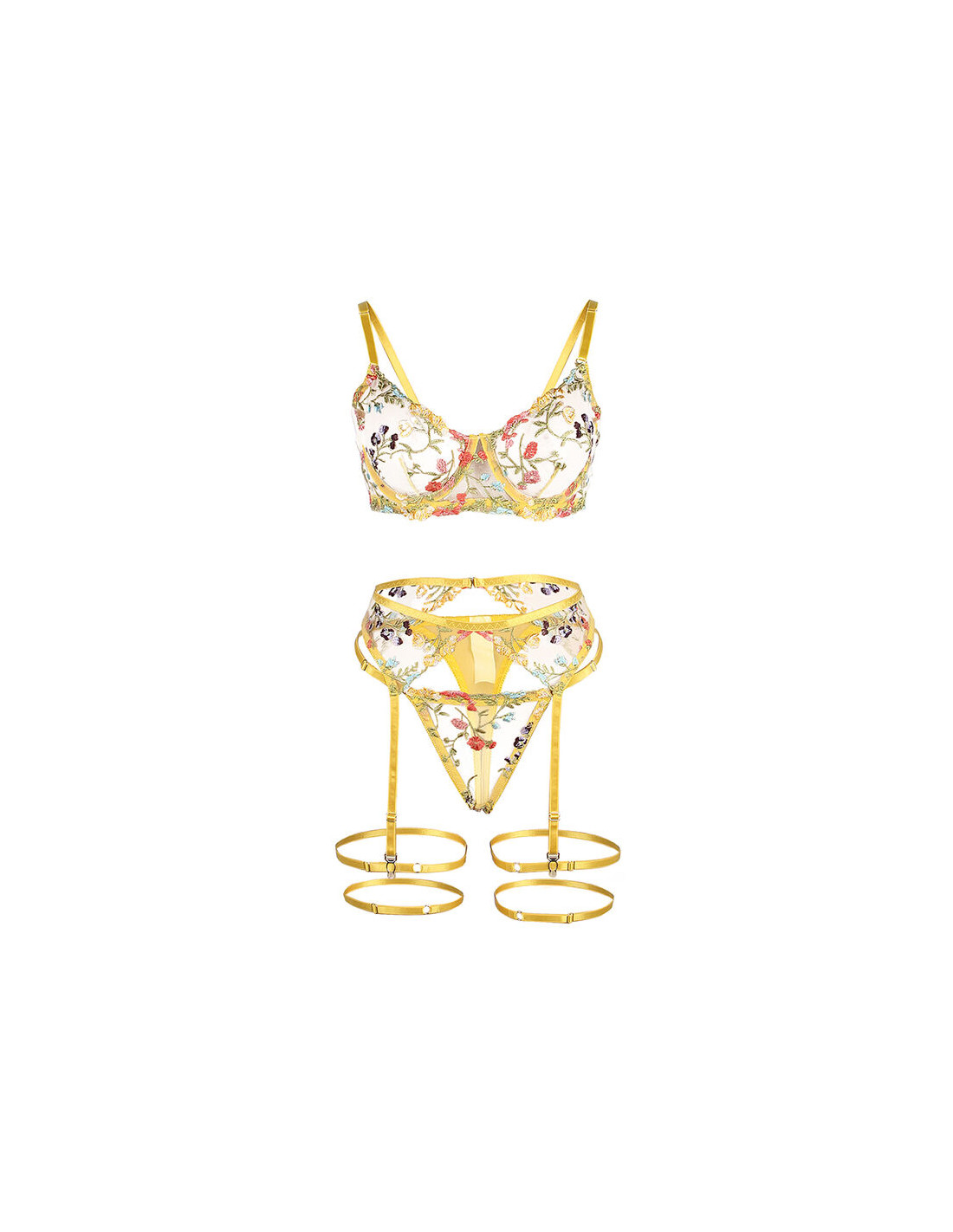 SUBBLIME - 954345 SUJETADOR + TANGA + LIGUEROS DISEÑO FLORAL AMARILLO S/M