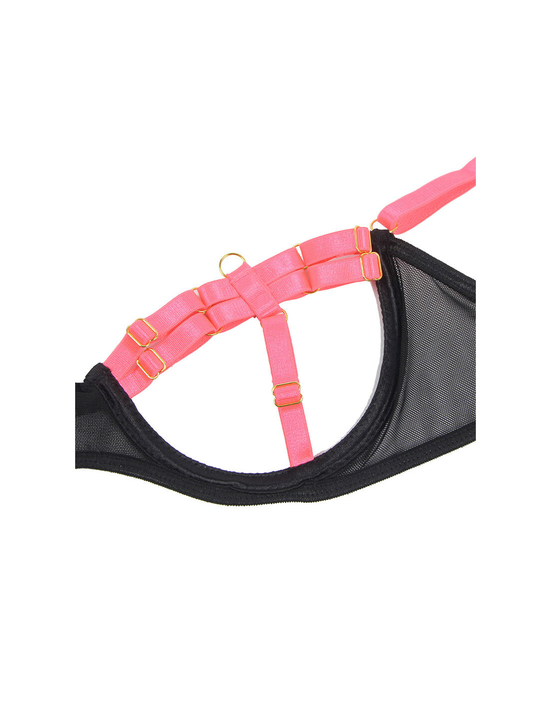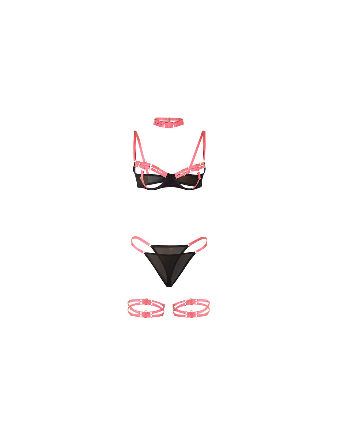 SUBBLIME - 955298 SET SUJETADOR CON COLLAR Y DETALLES PARA PIERNAS ROSA FLUORESCENTE S/M