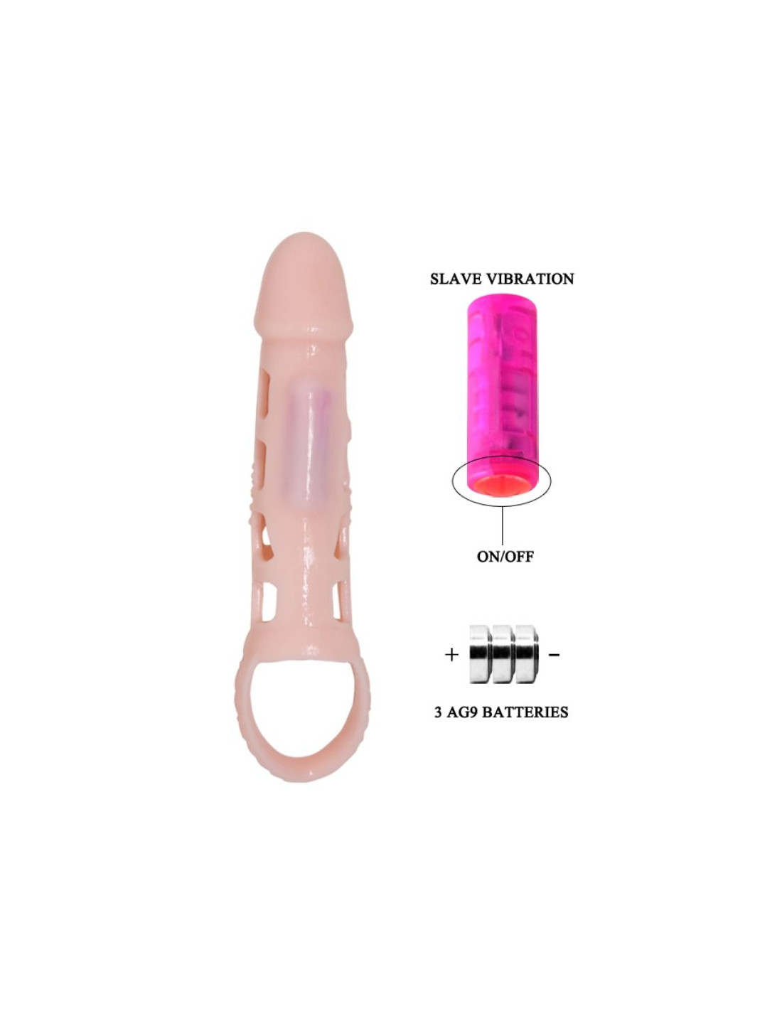 BAILE - PENIS EXTENDER COVER WITH VIBRATION AND NATURAL STRAP 13.5 CM, D-222196