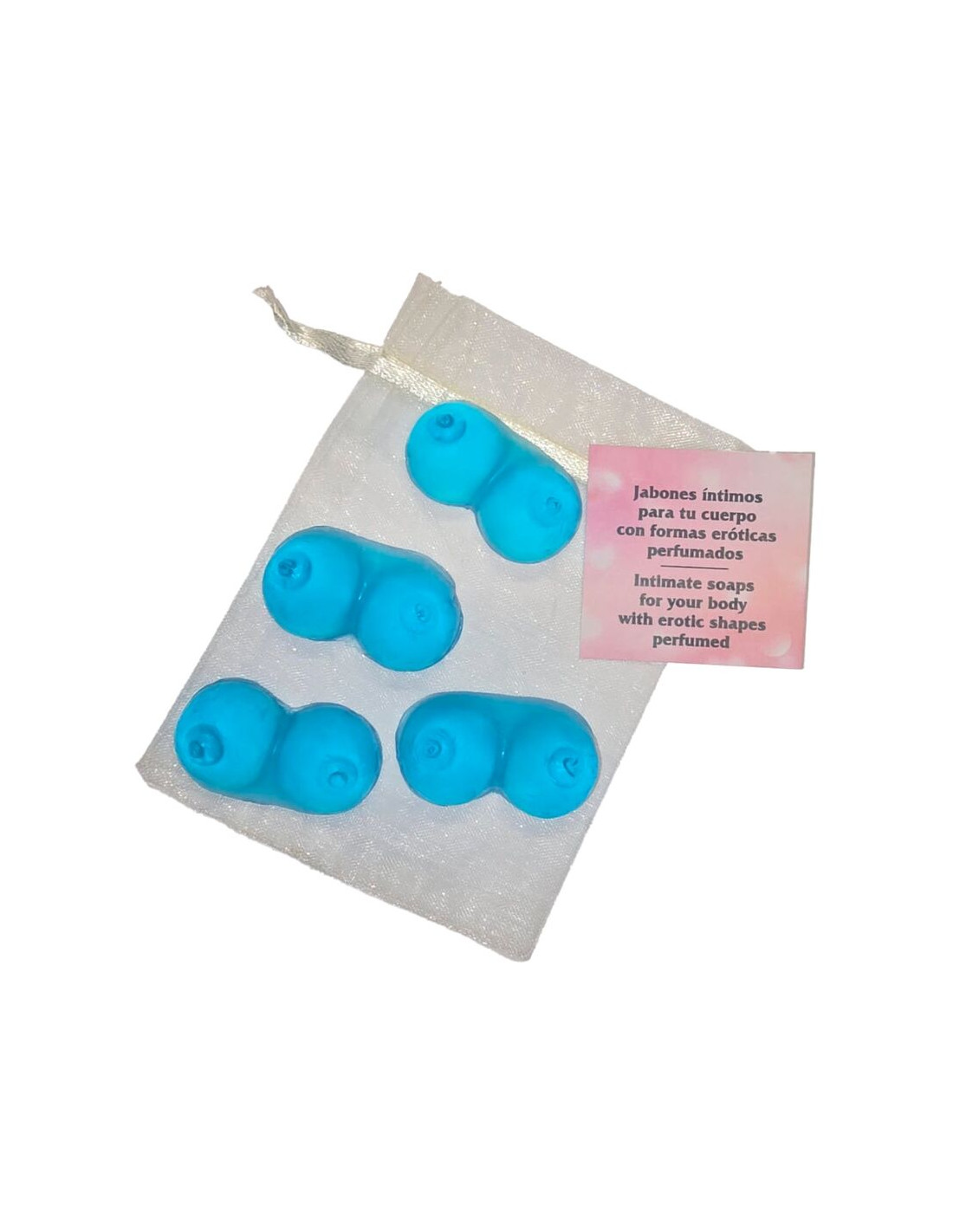 DIABLO PICANTE - 4 MINI JABONES PERFUMADOS FORMA PECHOS AZUL