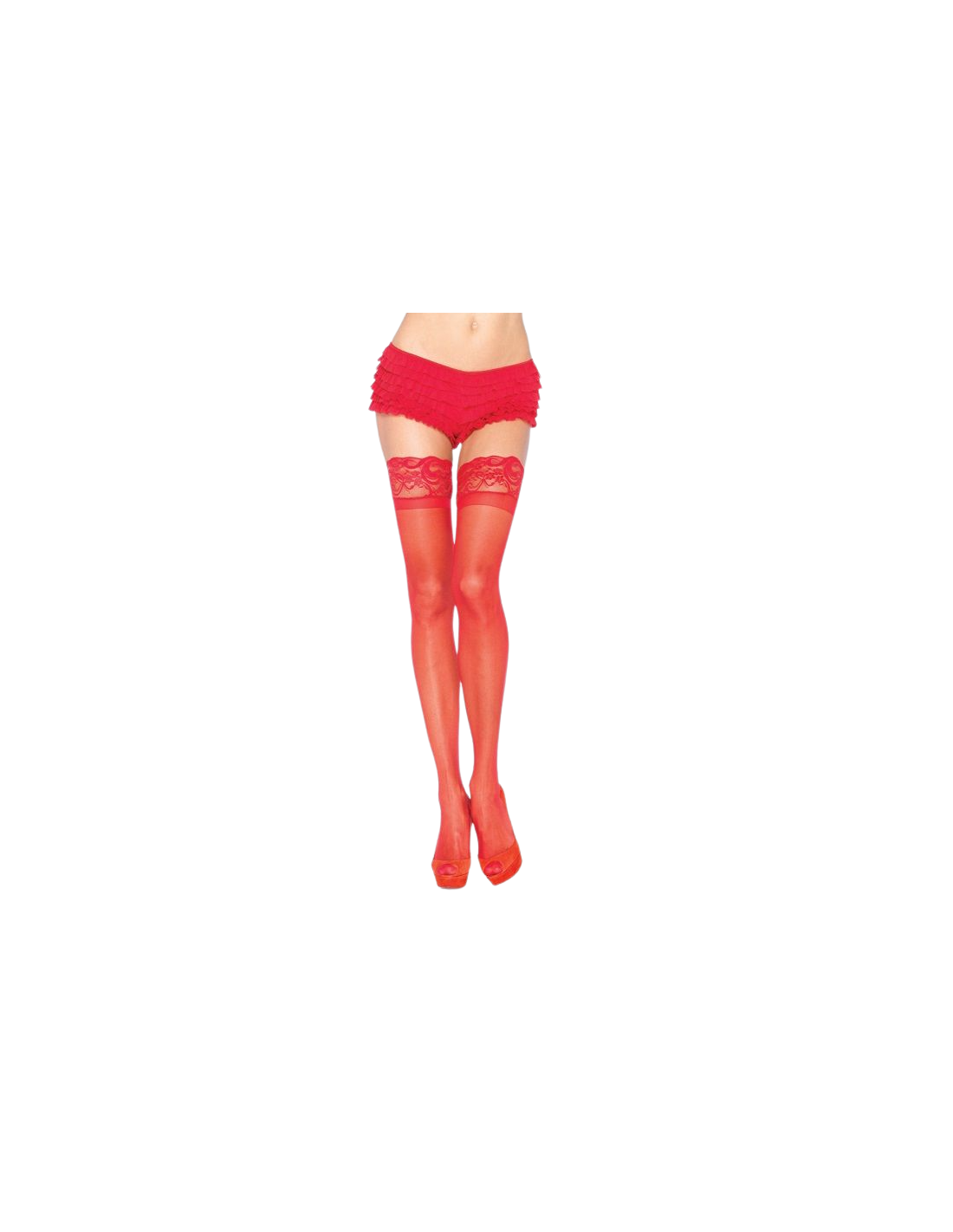 LEG AVENUE - MEDIAS ROJAS CON ENCAJE AUTOADHESIVAS
