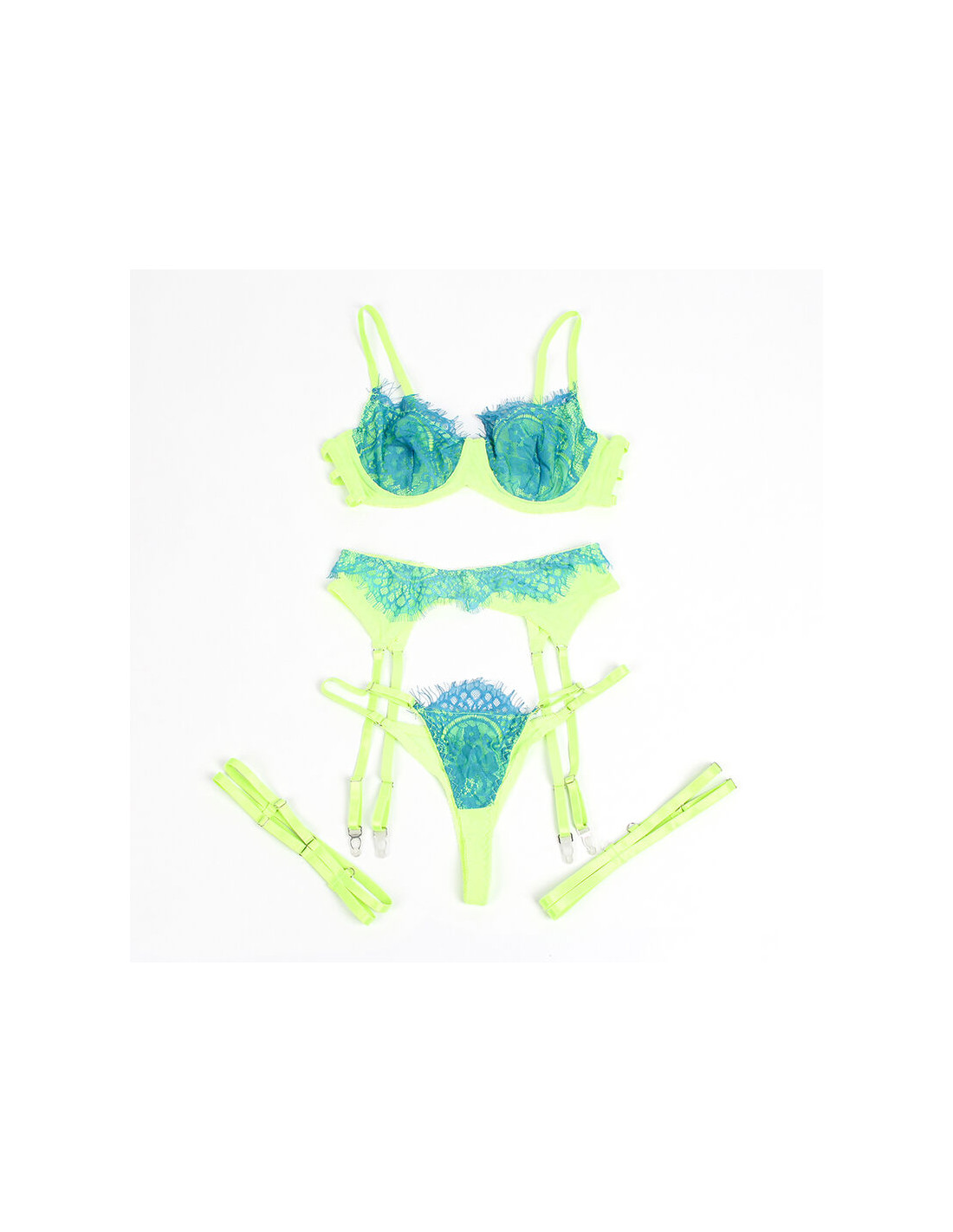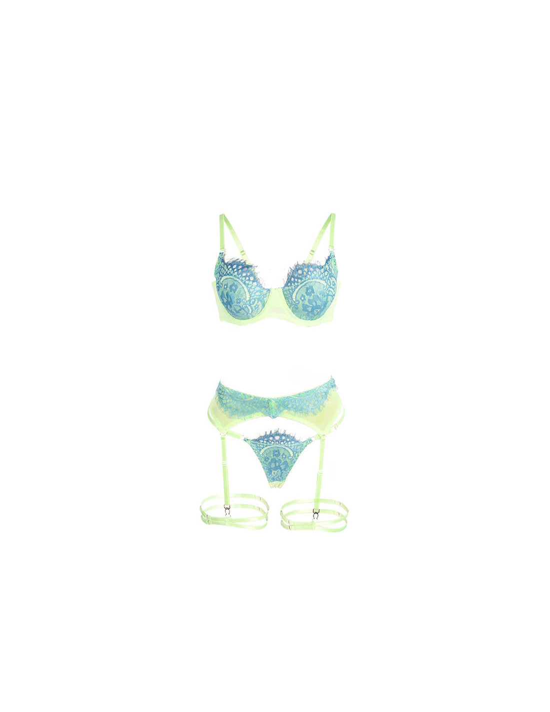 SUBBLIME - 955328 SET SUJETADOR CON ENCAJE Y LIGUEROS VERDE Y AZUL L/XL