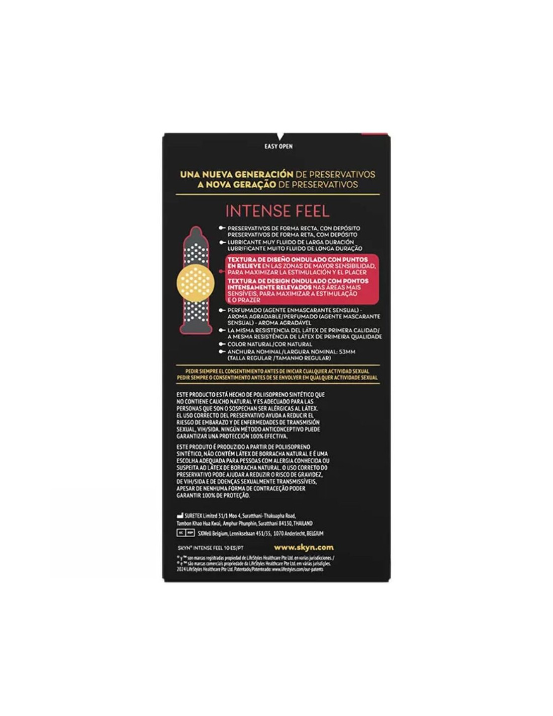 SKYN PRESERVATIVO INTENSE FEEL TEXTURA CON DISENO ONDULADO 10 UNIDADES