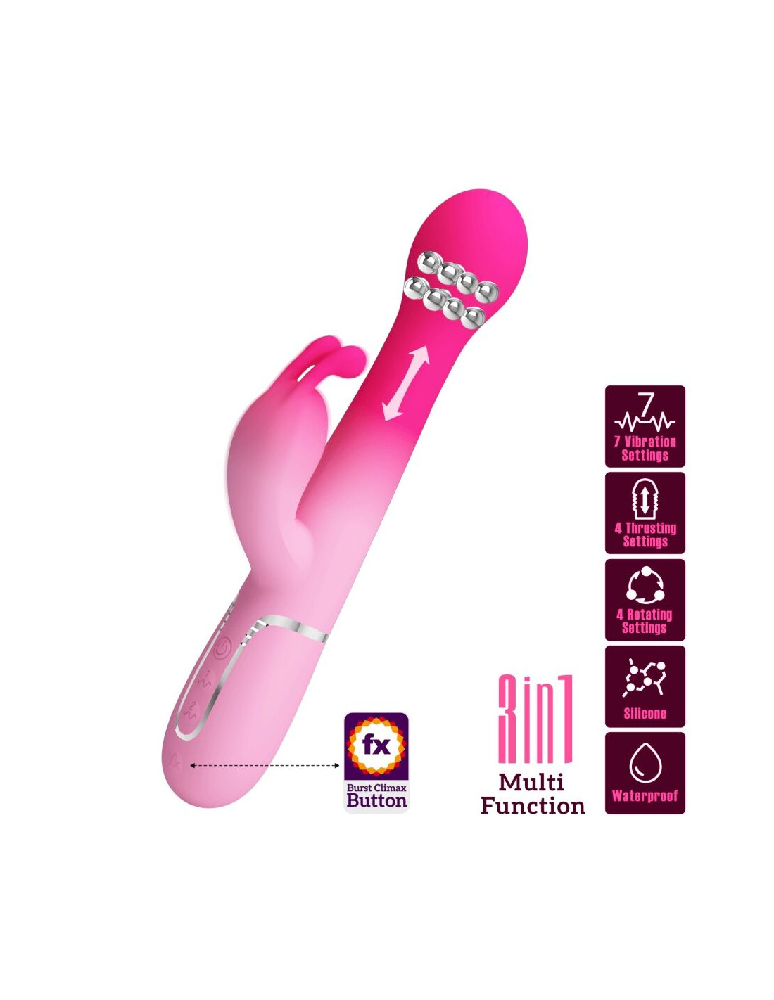 PRETTY LOVE DEJON VIBRADOR RABBIT 3 EN 1 MULTIFUNCION ROSA