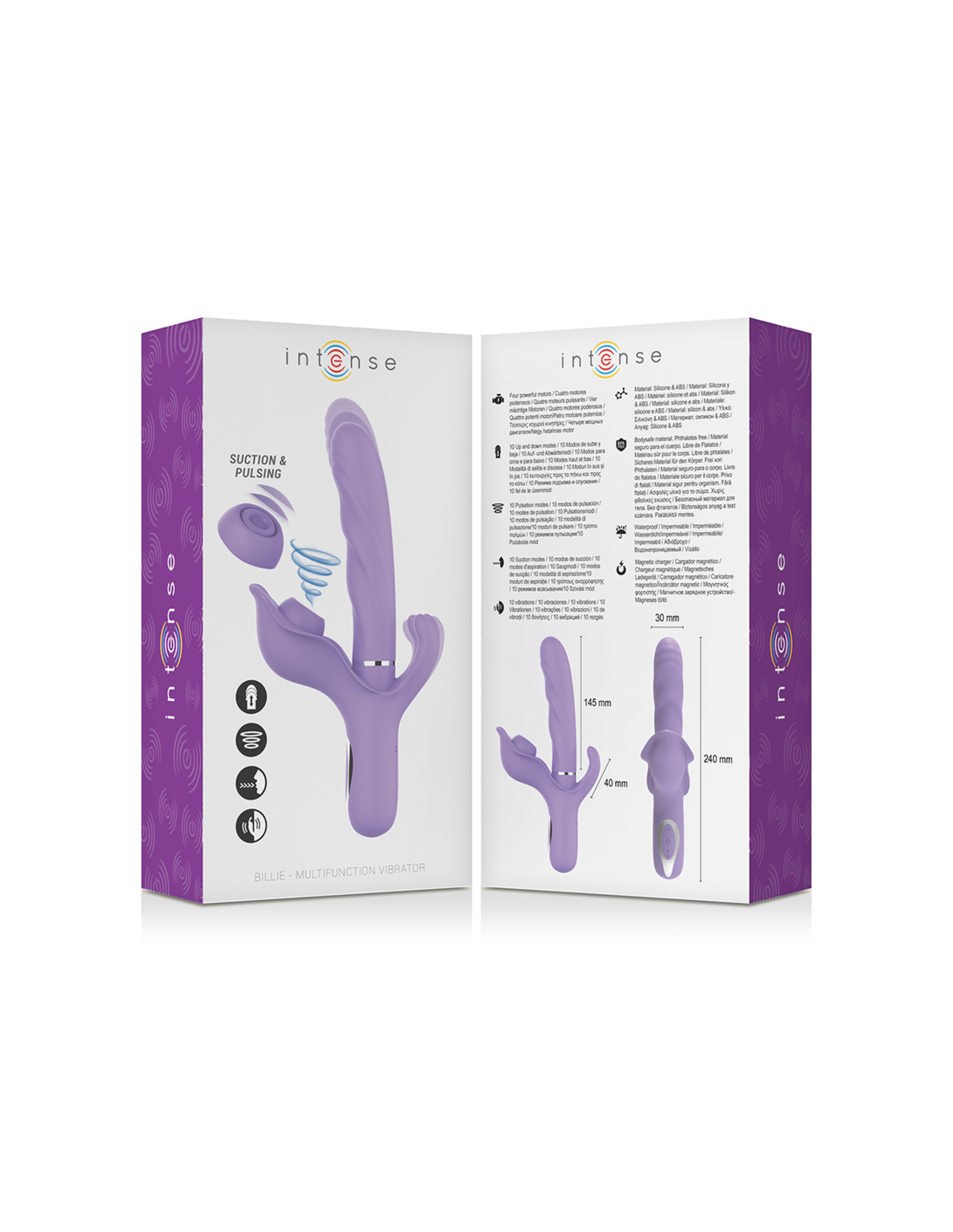 INTENSE - BILLIE VIBRADOR MULTIFUNCIÓN RECARGABLE SUCCIONADOR CON PULSADOR MORADO